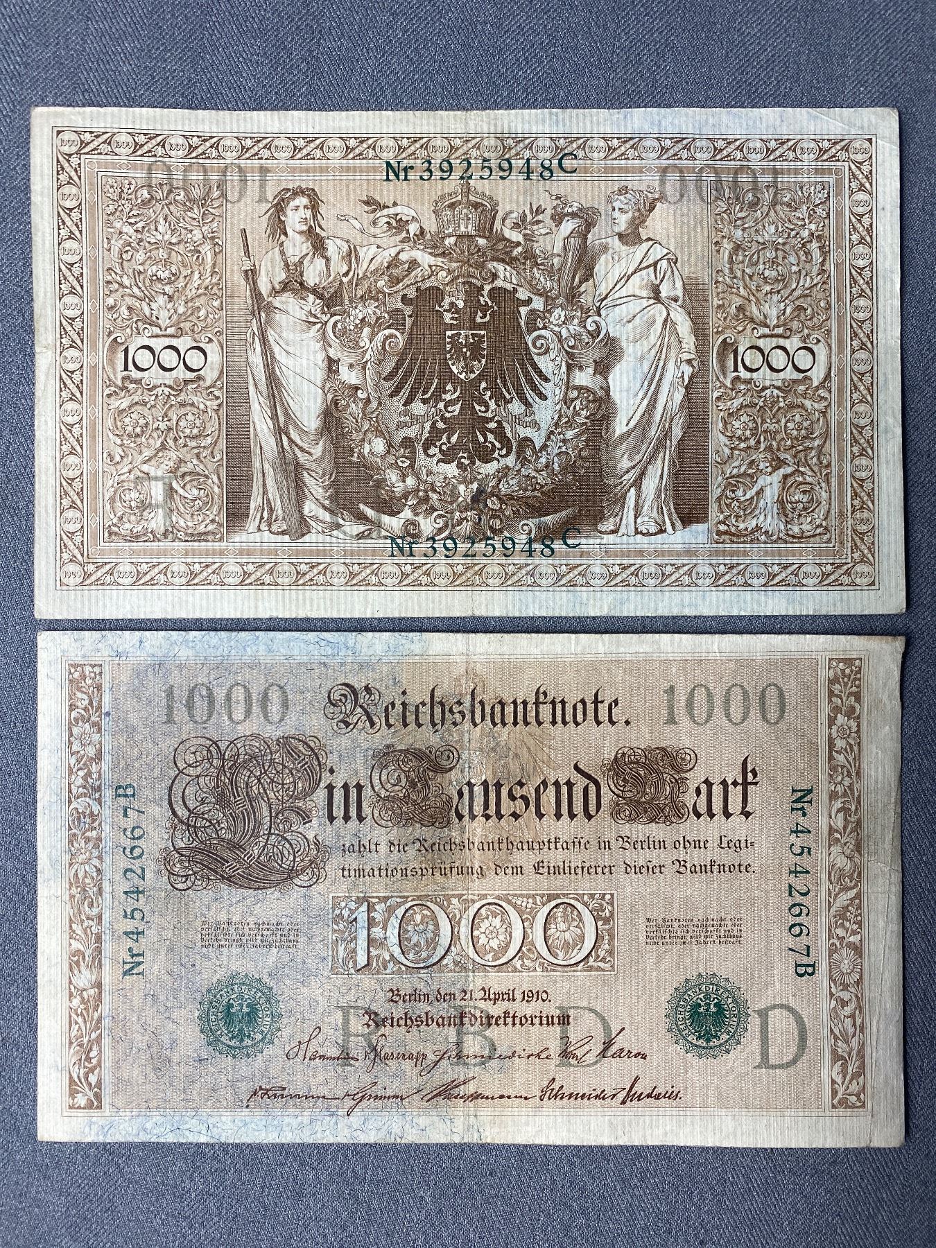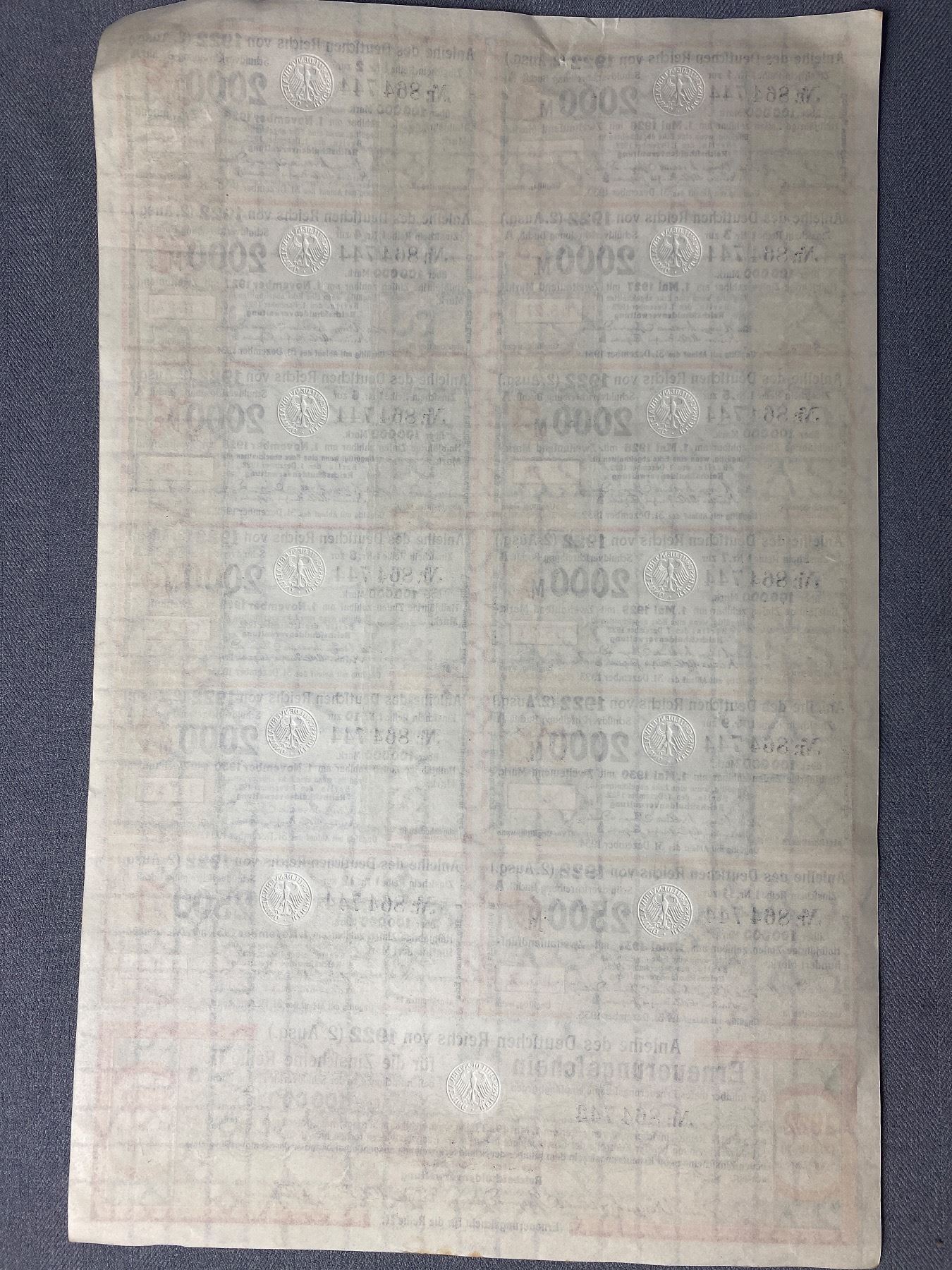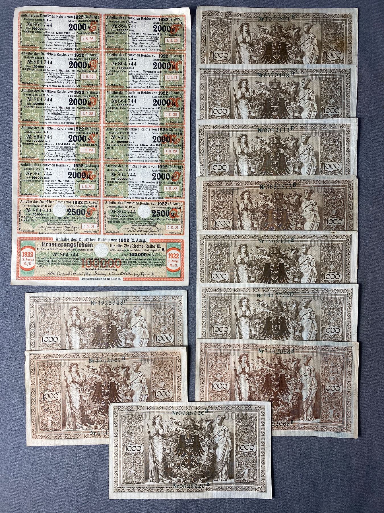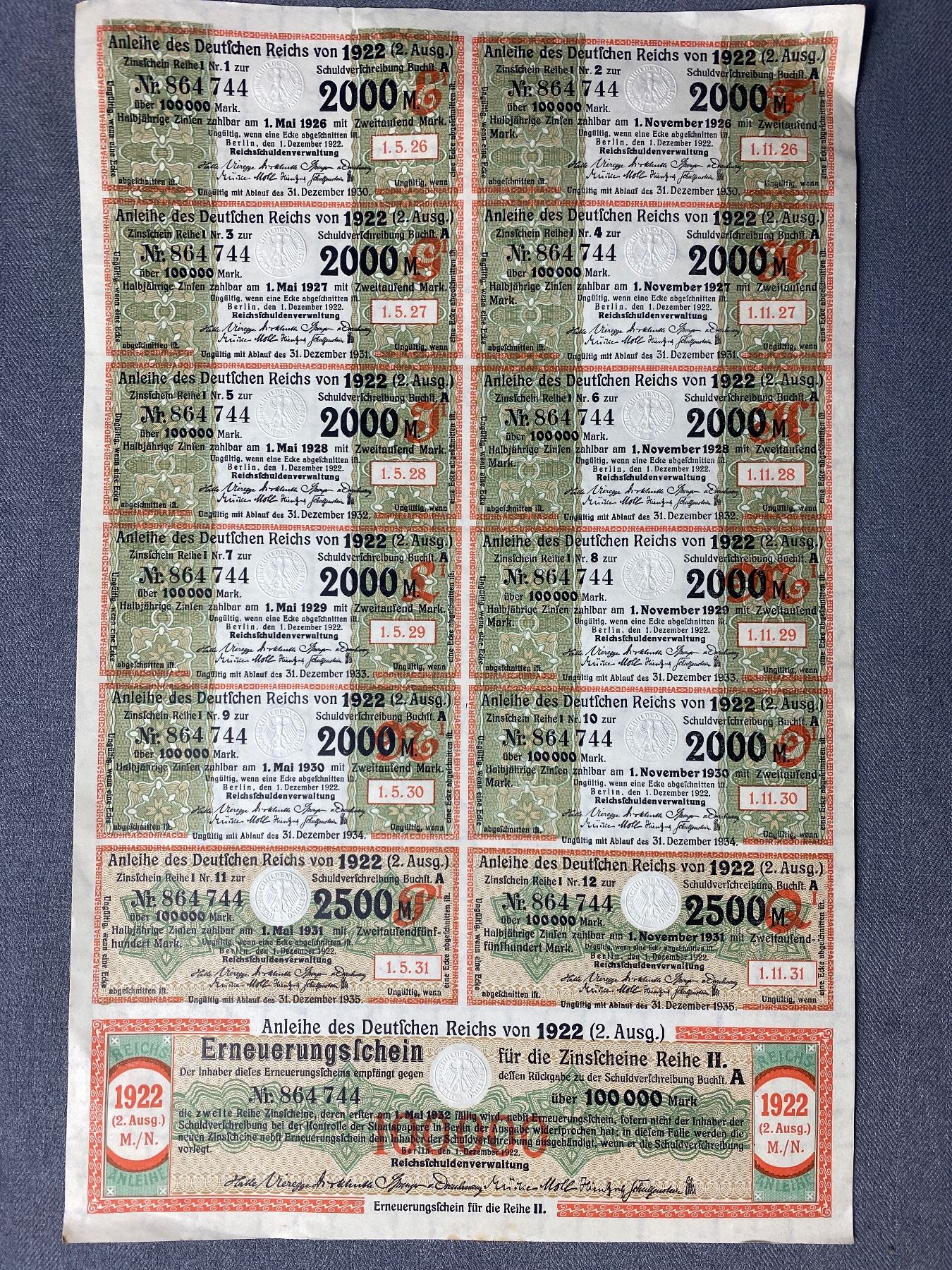 Germany 1922 War Bond Coupons With 10 German Banknotes