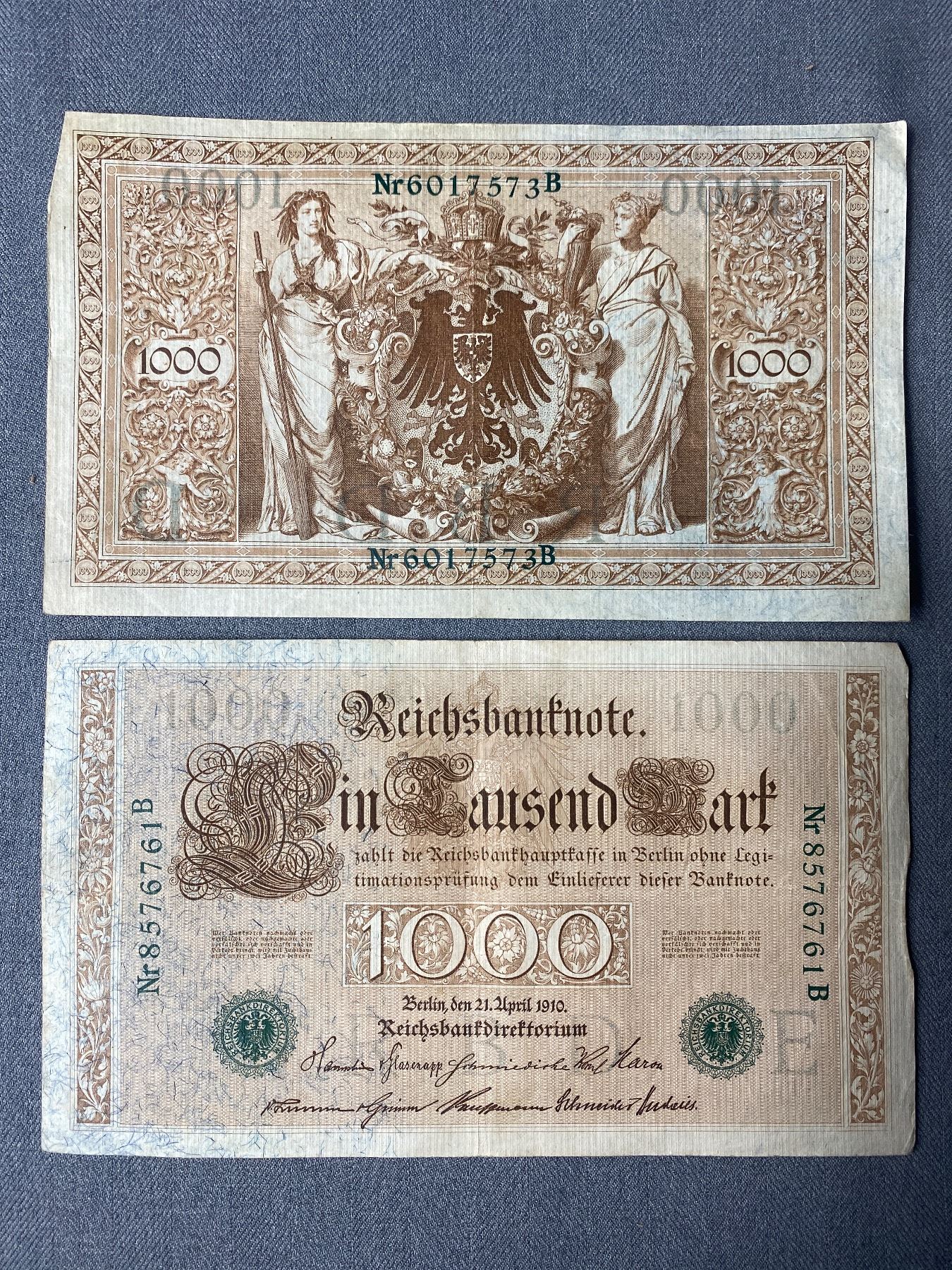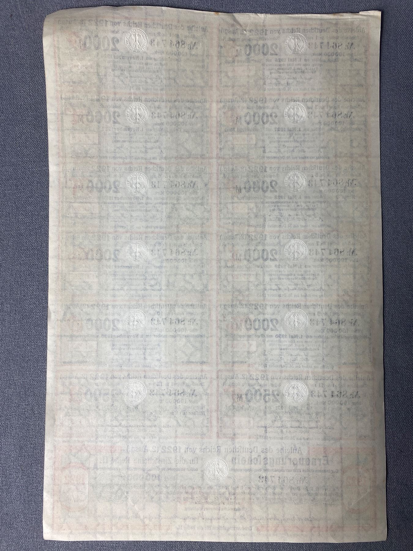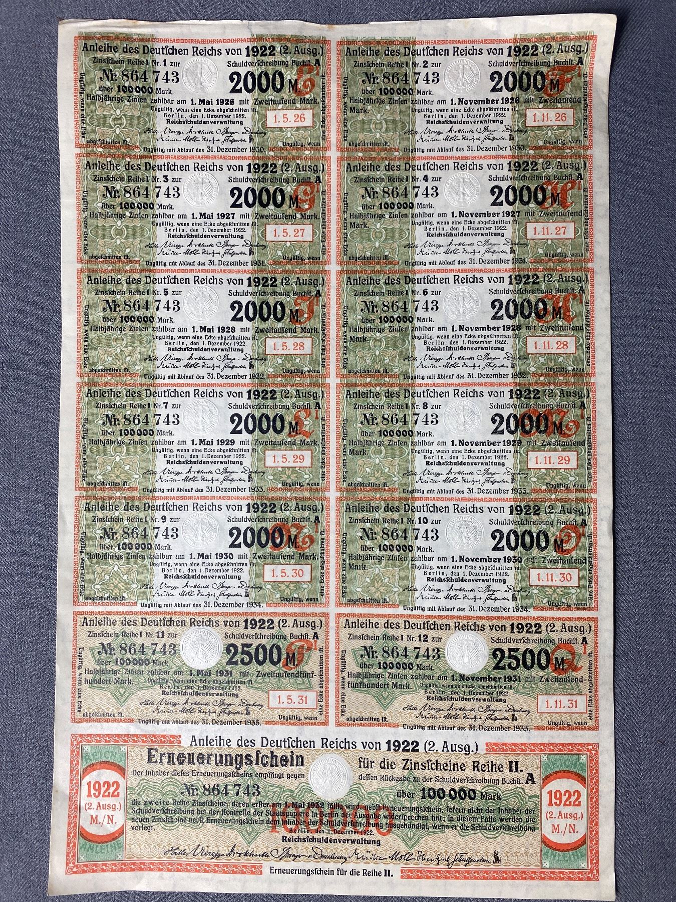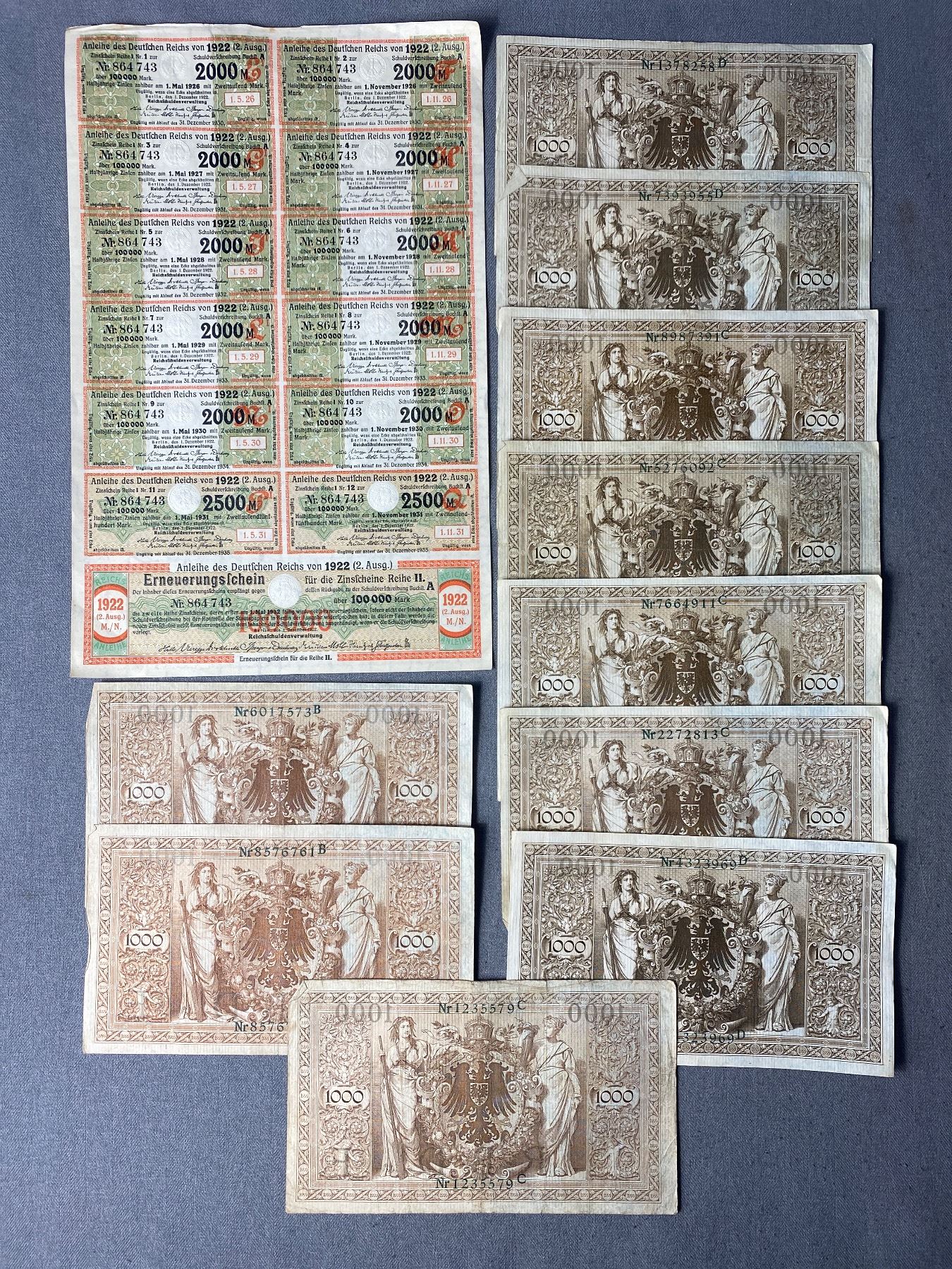 Germany 1922 War Bond Coupons With 10 German Banknotes