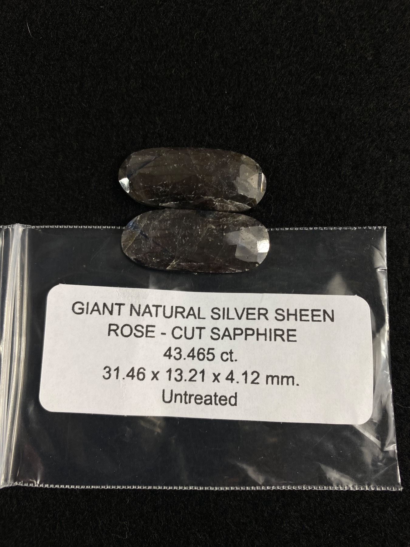 Giant Natural Silver Sheen Rose-Cut Sapphire 43.465 ct 31.46 x13.21 x4.12mm Untreated