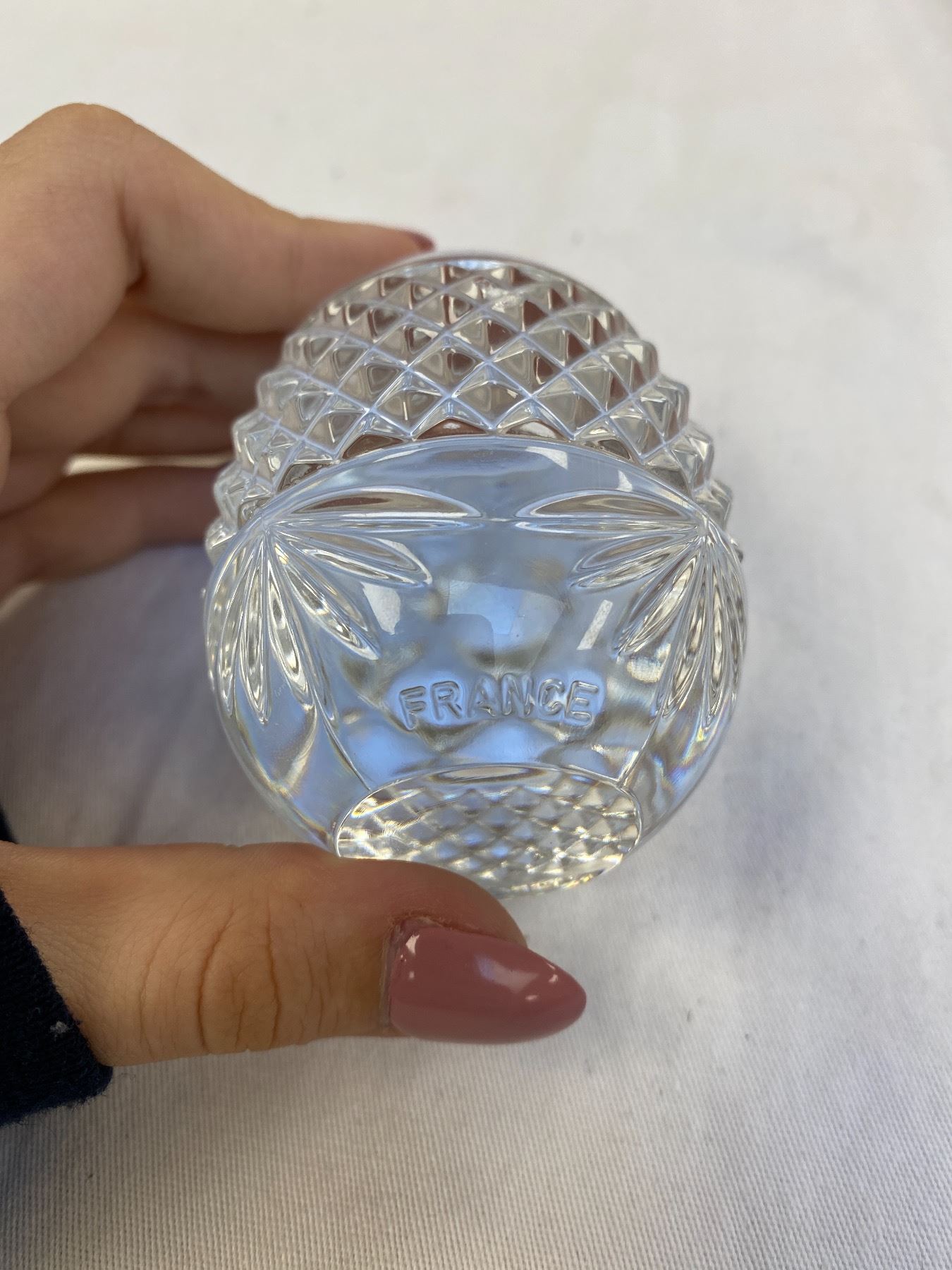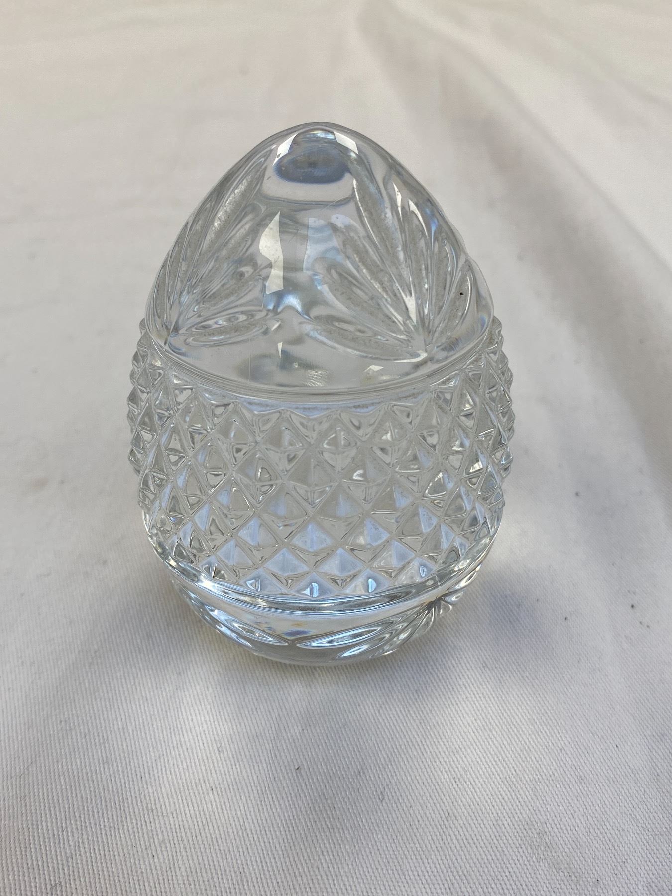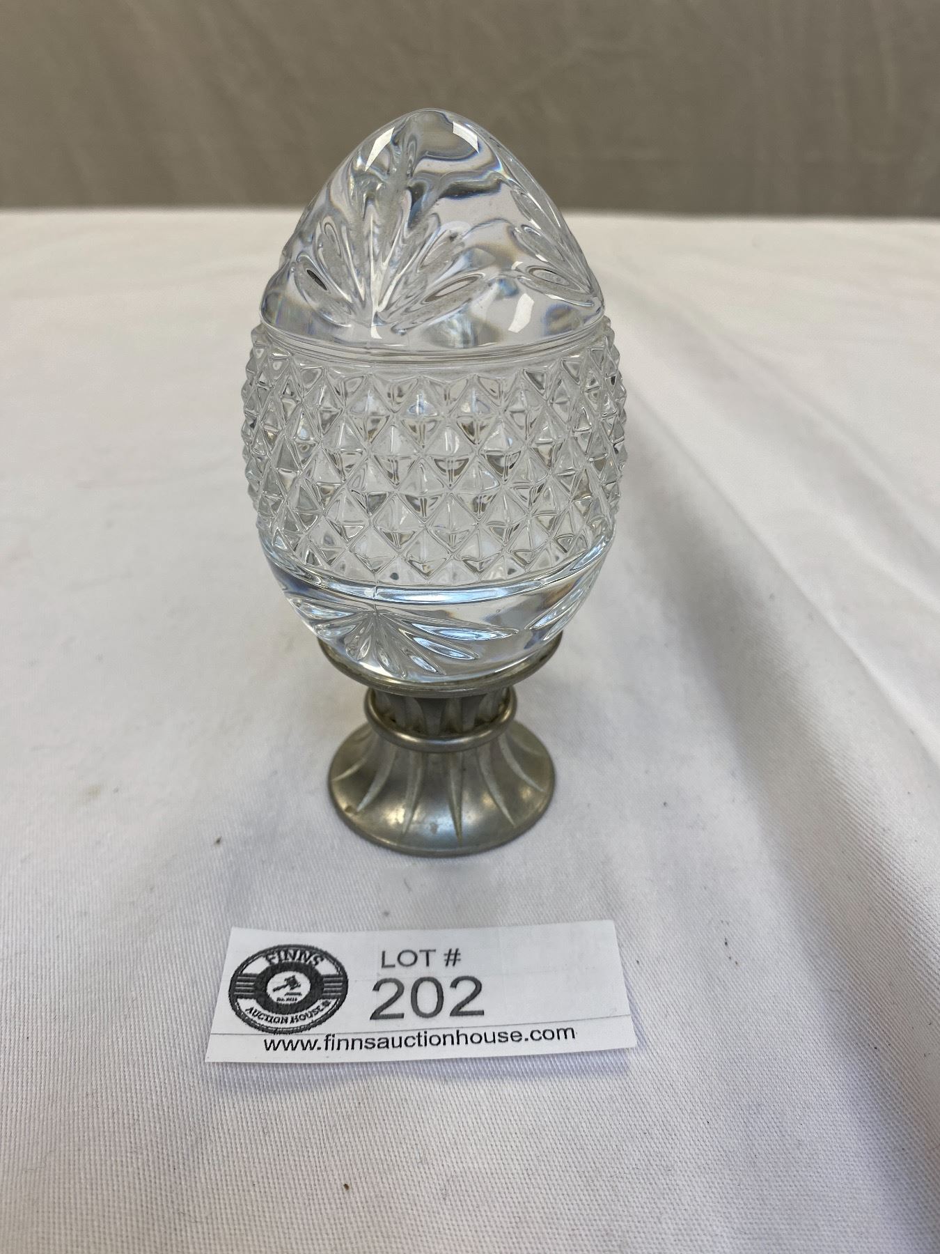 Glass Egg, Stamped France. Metal Stand Stamped 1993 Made in Brazil