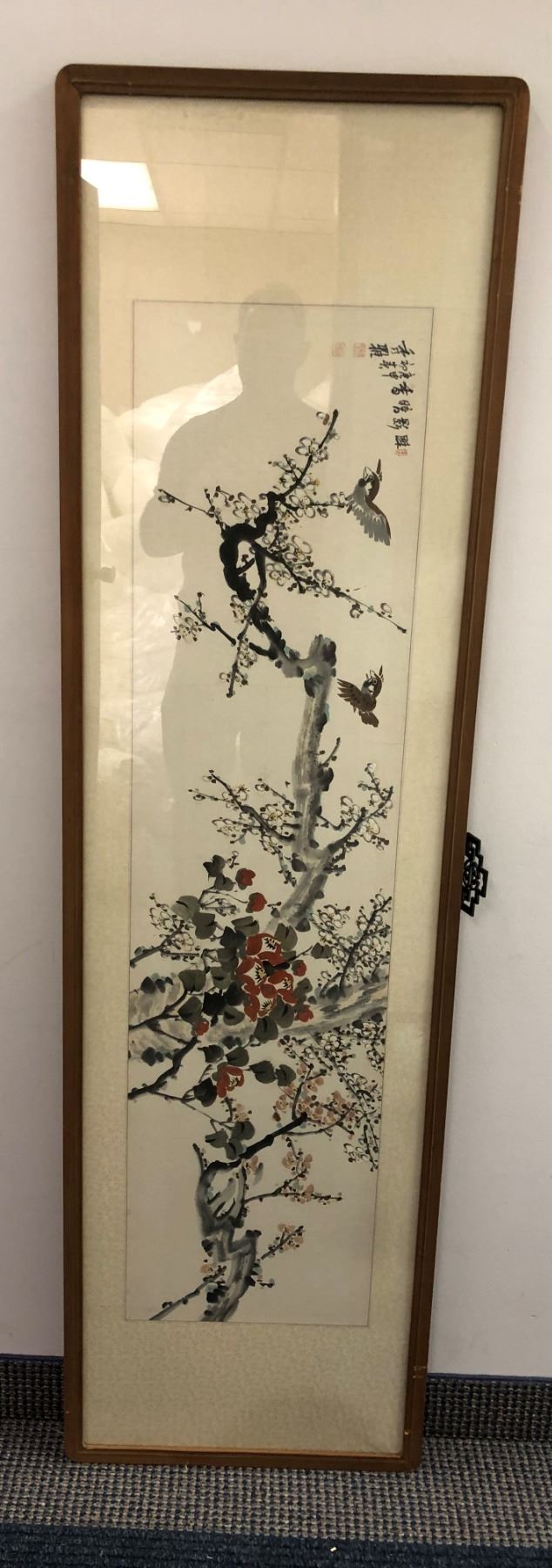Glass Front Framed Chinese Traditional Ink Painting (Approx. 19x67 1/2")