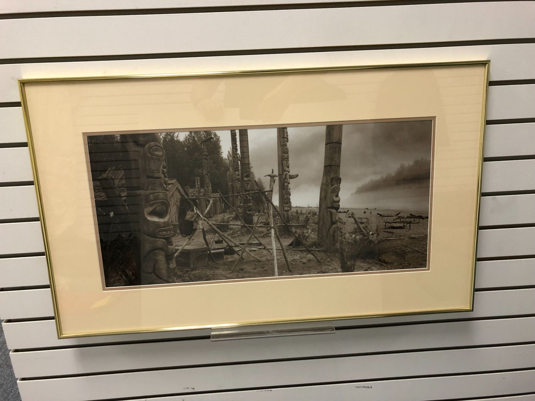 Glass & Golden Framed Indigenous Art/ Culture Print - approx. 34in x 20in