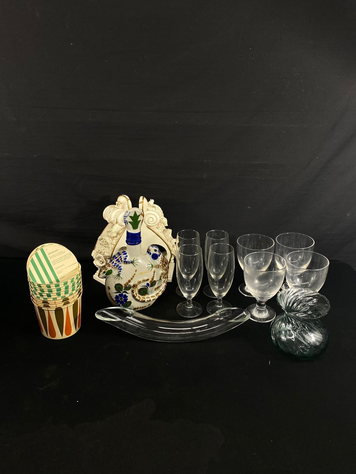 Glass Lot Of Home Décor - Tequila Reposado Mexican Decanter, Glasses, Vases, Bookends etc