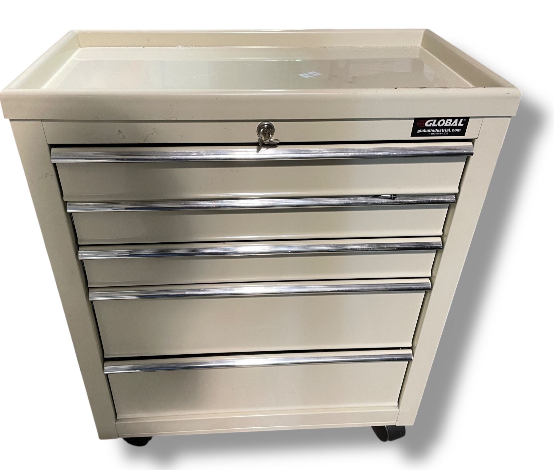 Global Vintage 5-Drawer Tool Chest on Wheels, w/ Key - includes content