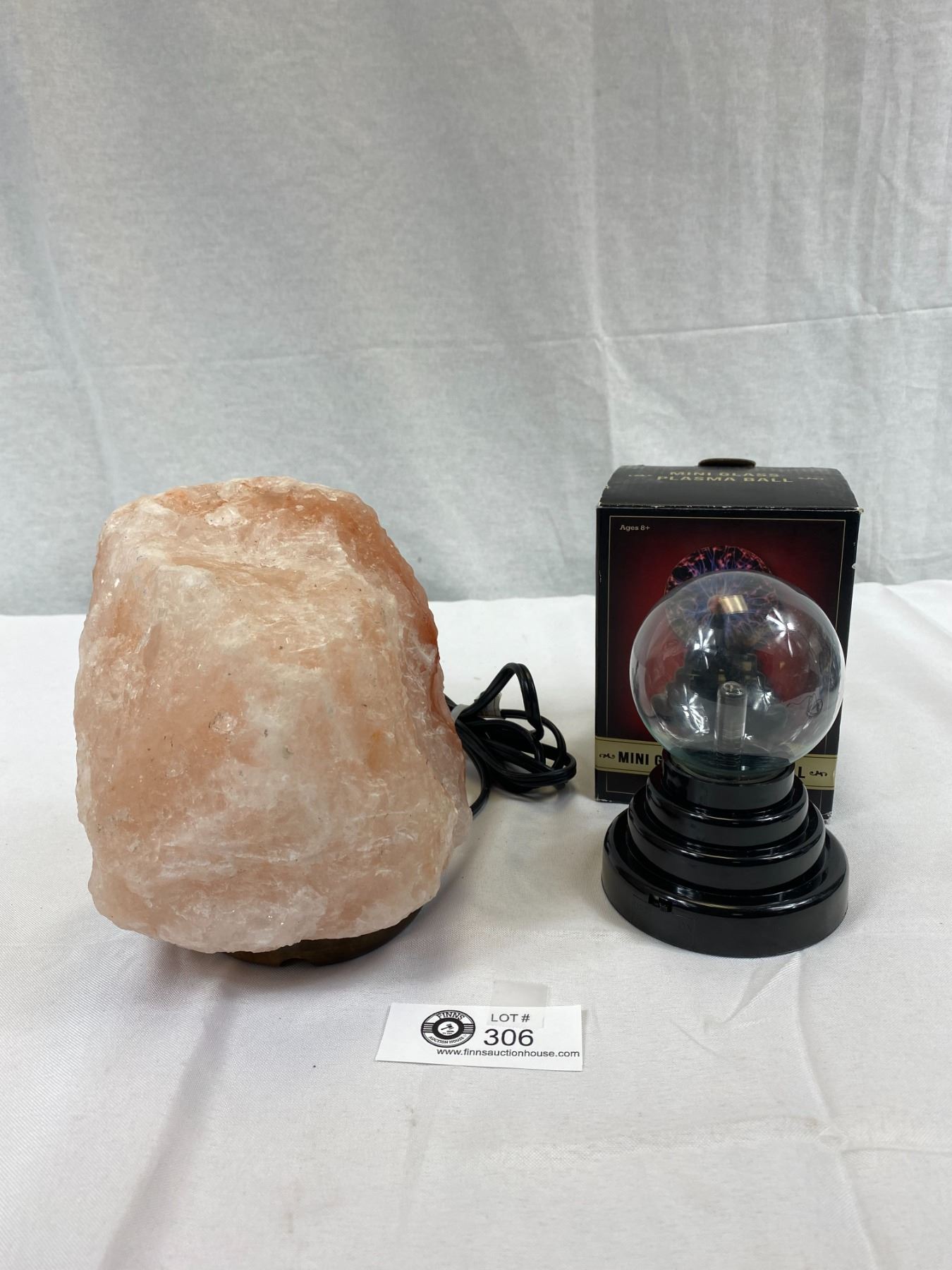 Globe Electric Himalayan Salt Lamp With Wood Base, 7"T And Mini Glass Plasma Ball Interactive Tough, Both Work Great