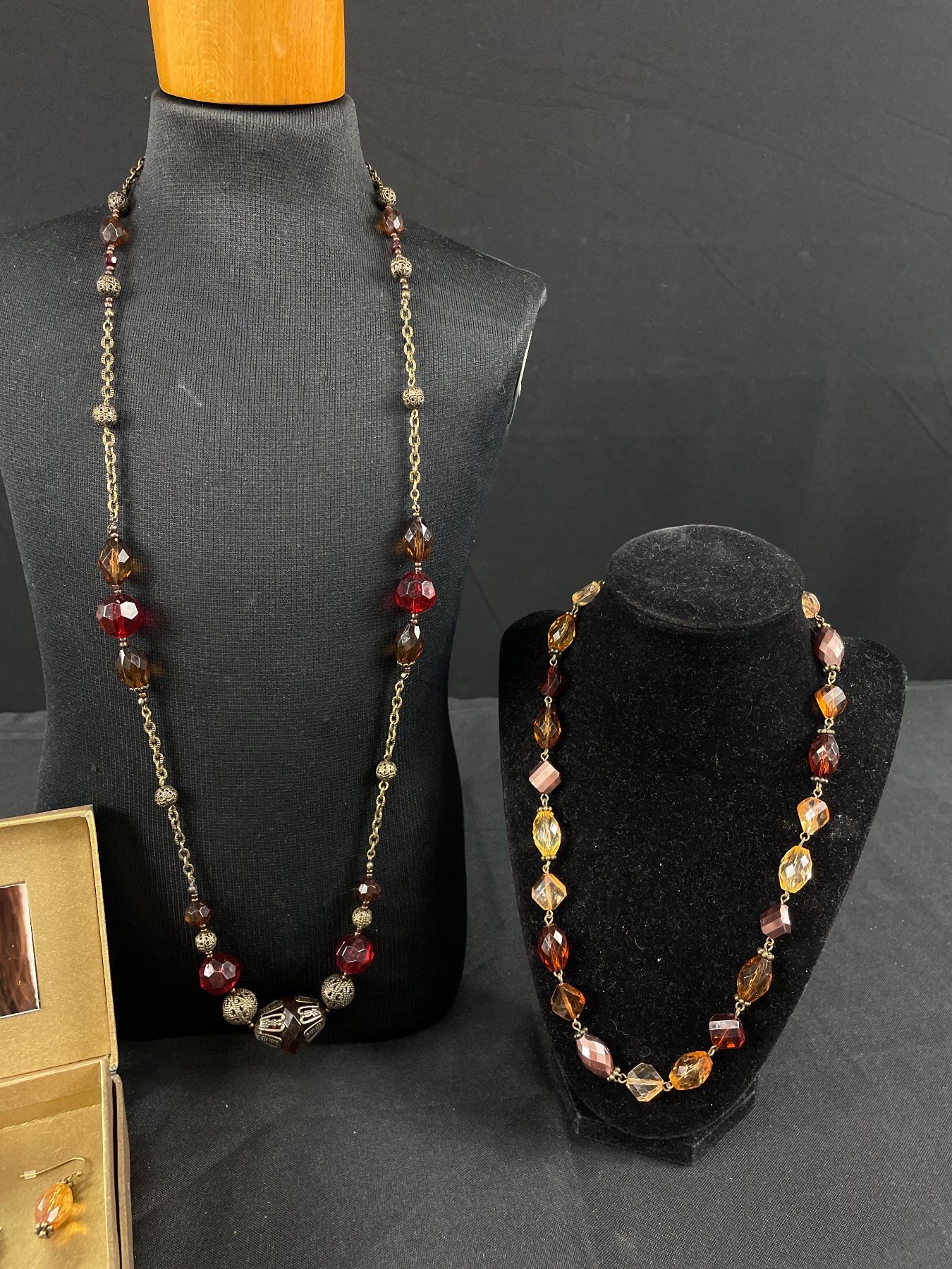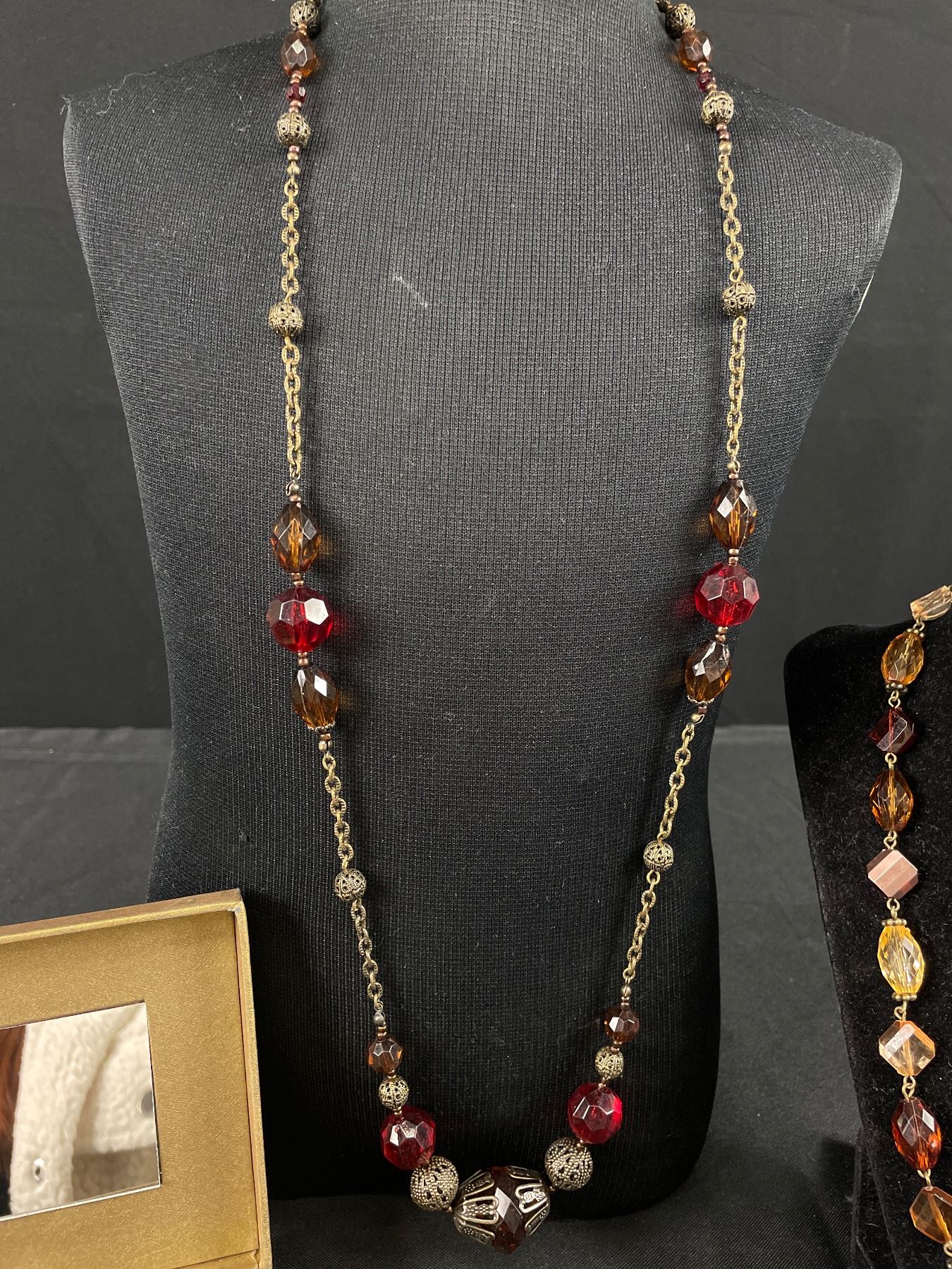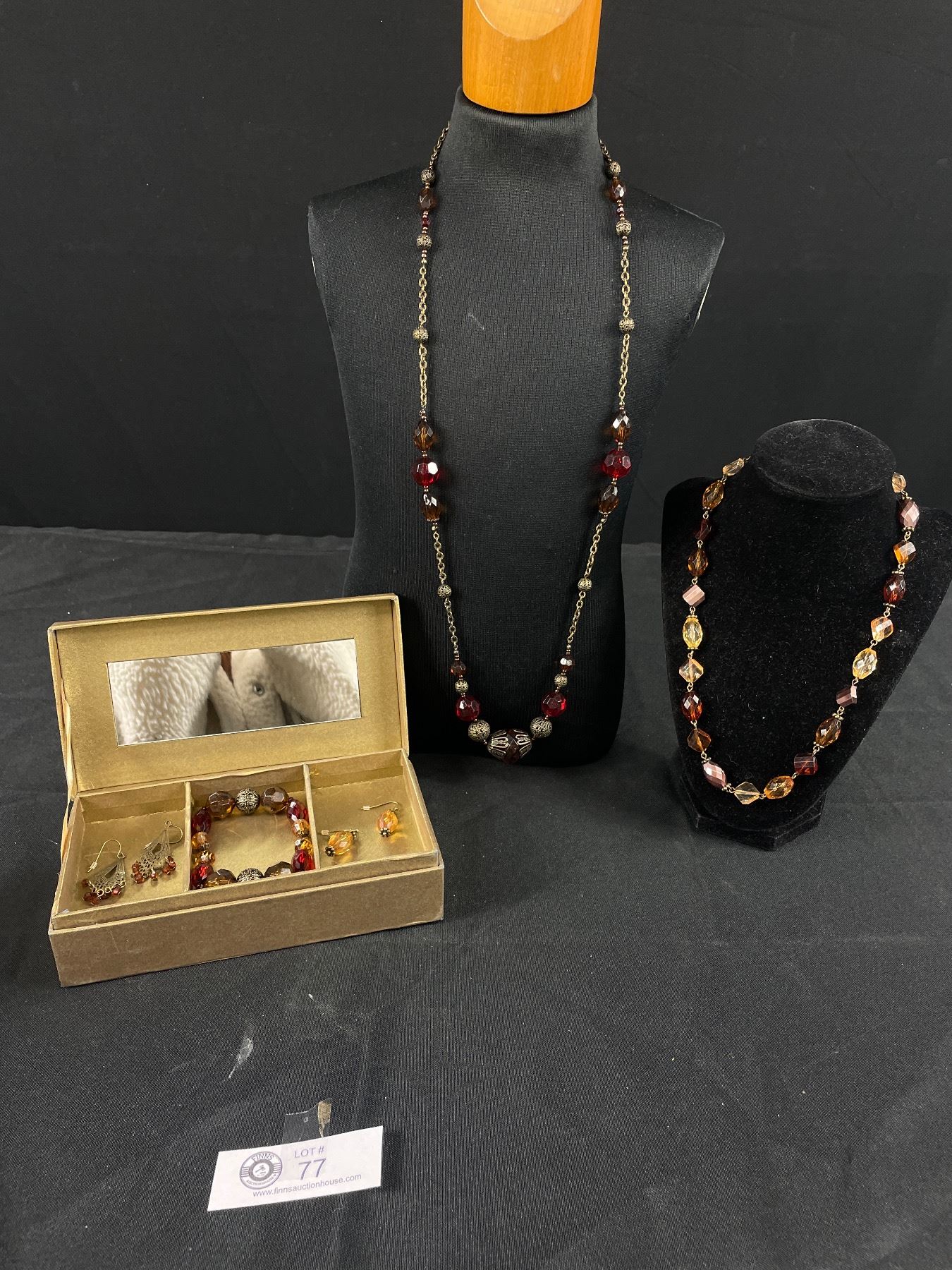 Gold Coloured Jewelry Box with Contents- Necklaces, Bracelet & Earrings