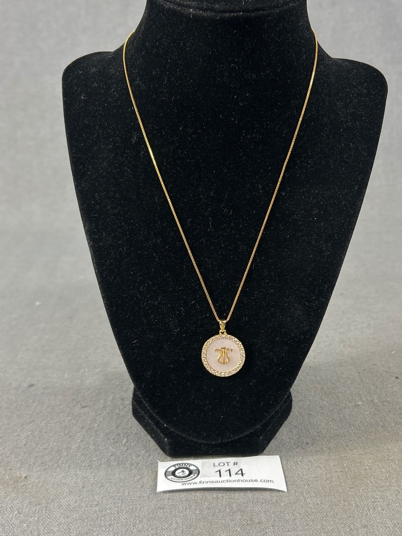Gold Over 925 Sterling Silver 18" Curb Link Chain & 1" Gold Over 925 Sterling Silver MOP Pendant - Tested