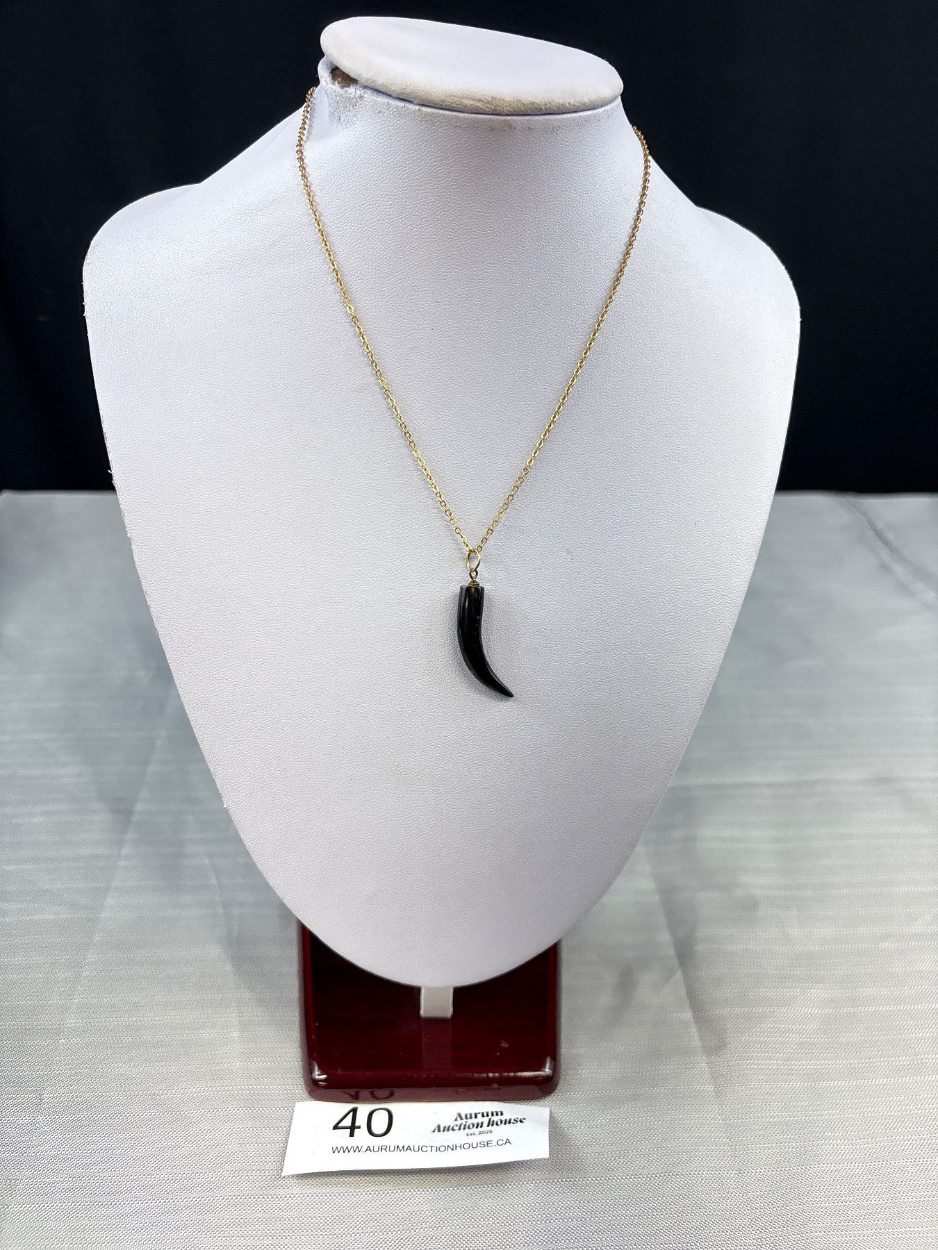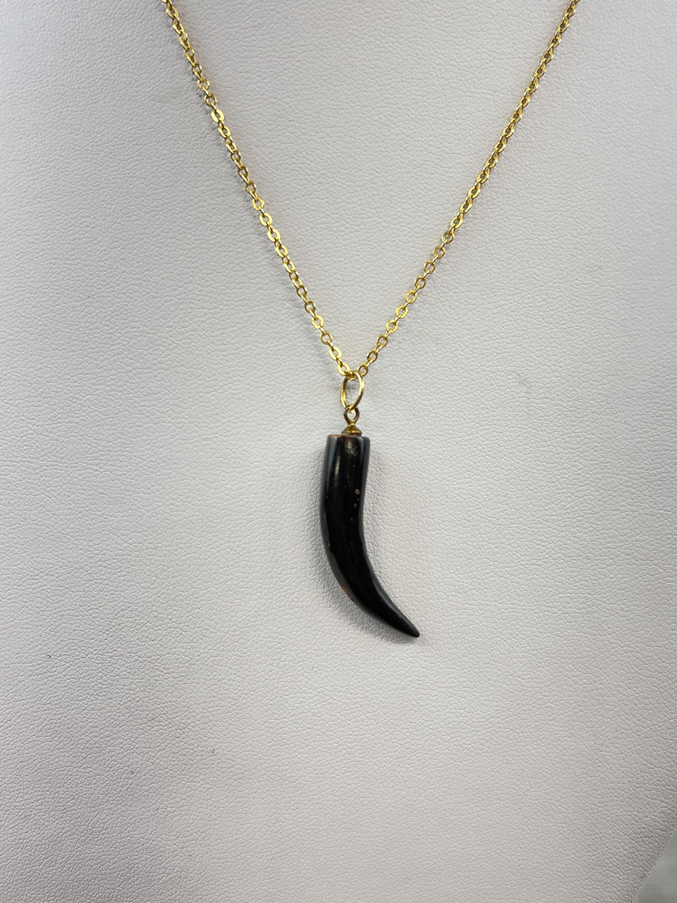 Gold Plated Chain w/ Black Coral Horn Shaped Pendant Necklace