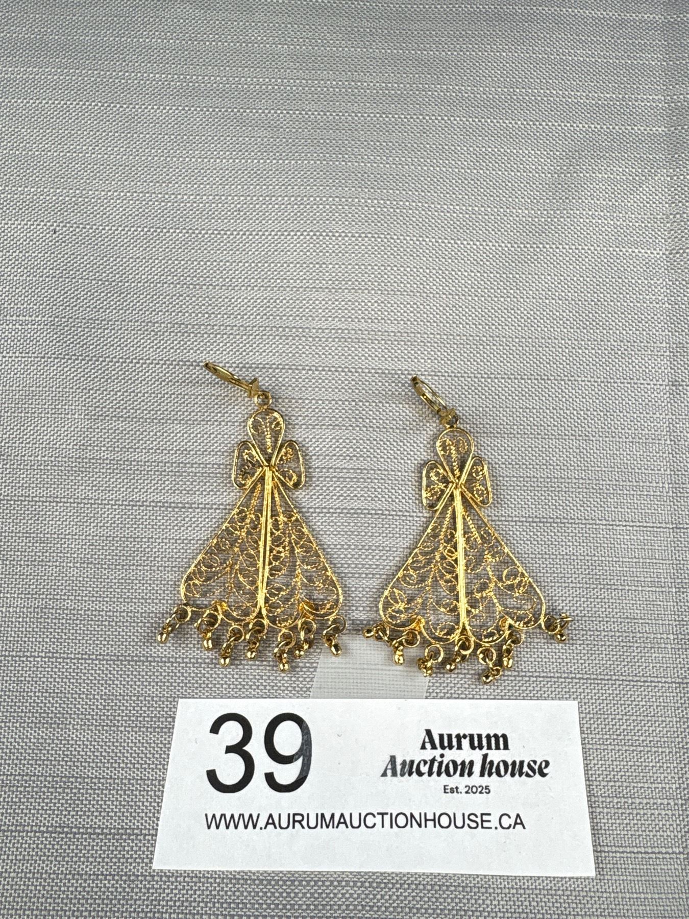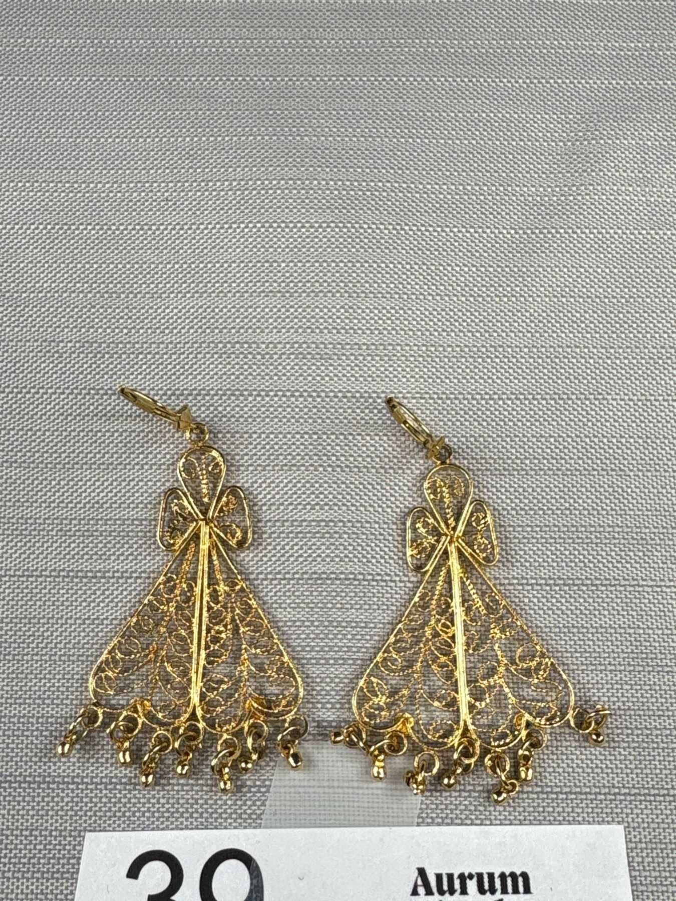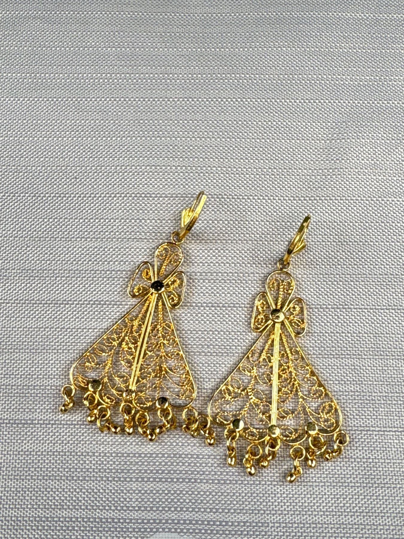 Gold Plated Silver Filigree w/ Original Shepard Hooks Dangling Earrings