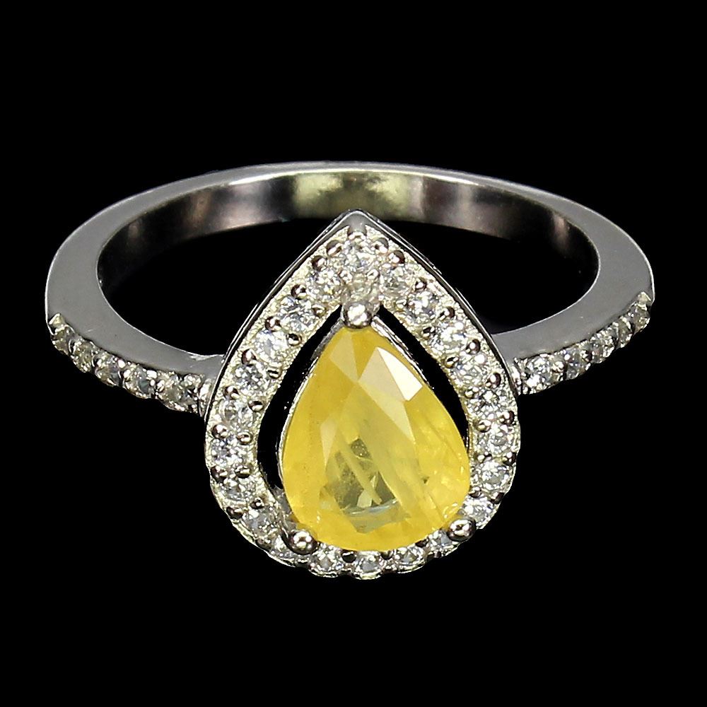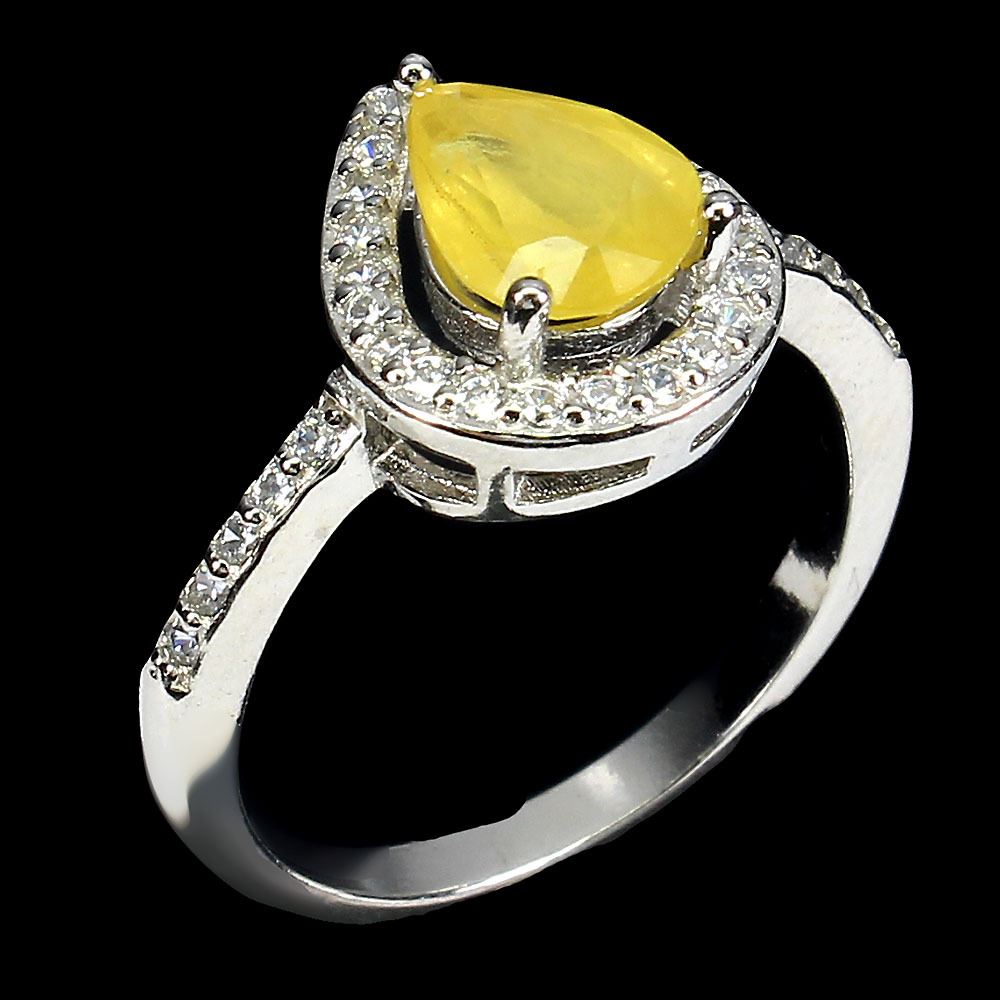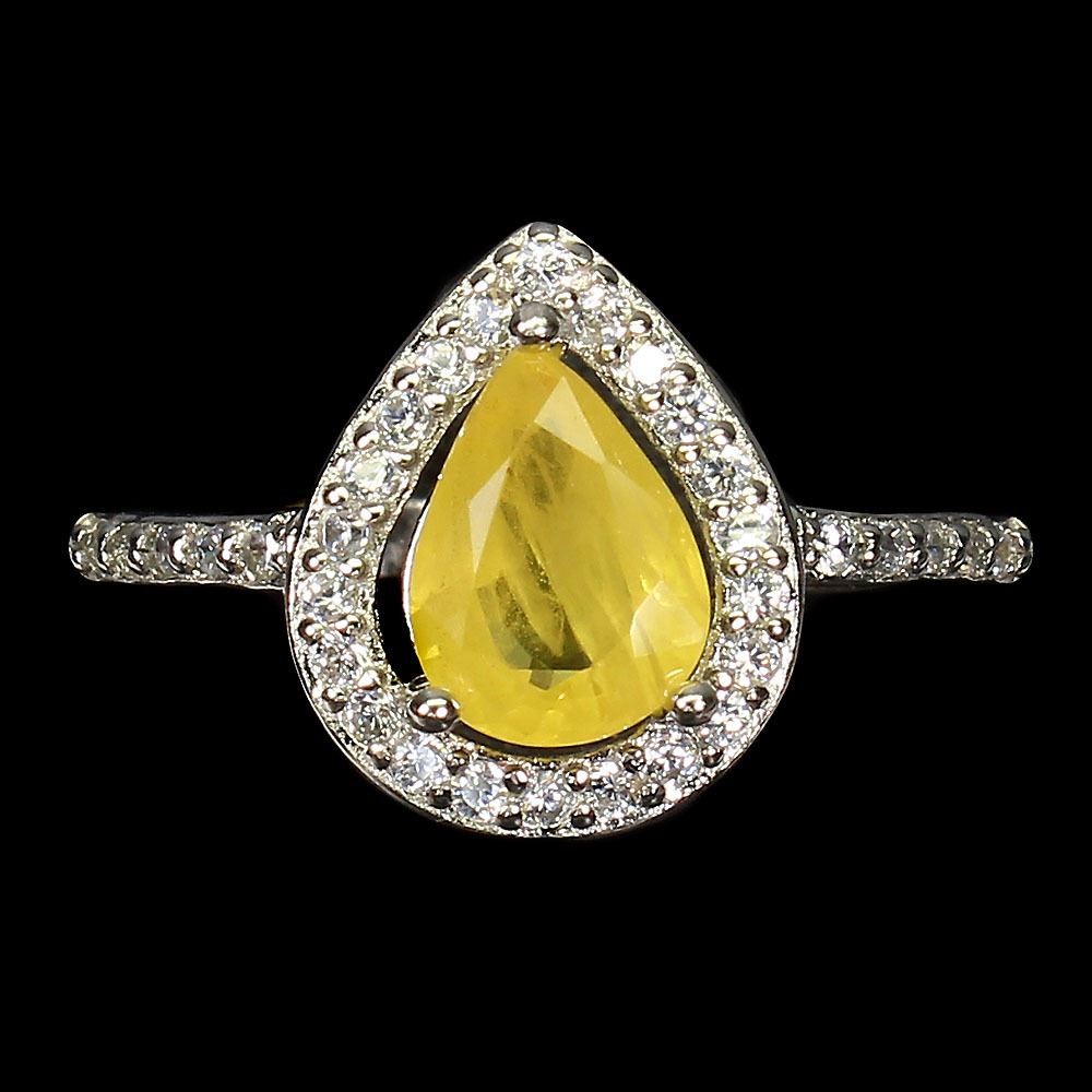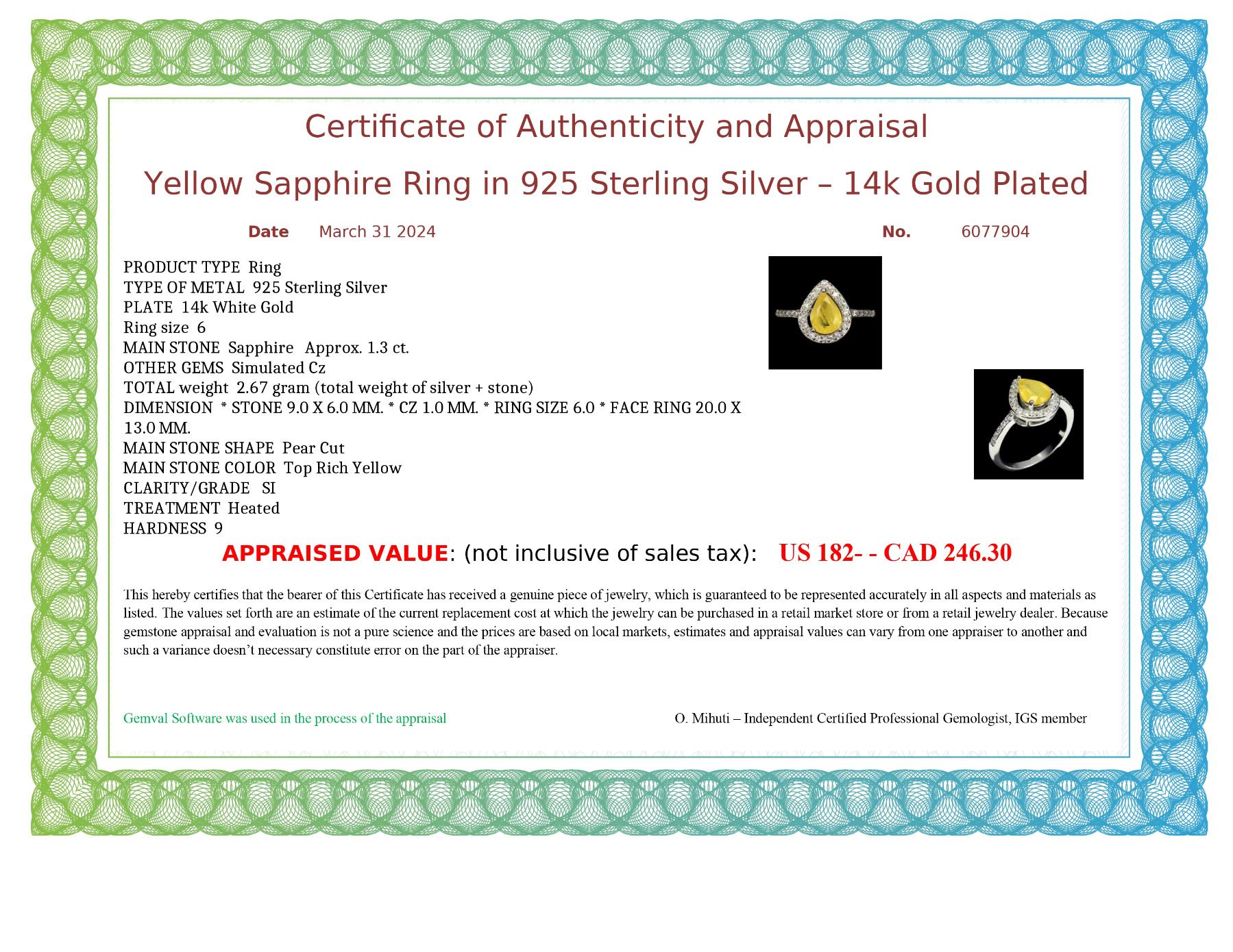 Good Looking Yellow Sapphire Ring in 925 Sterling Silver 14 K White Gold Plated - Appraised Replacement Value CAD 246
