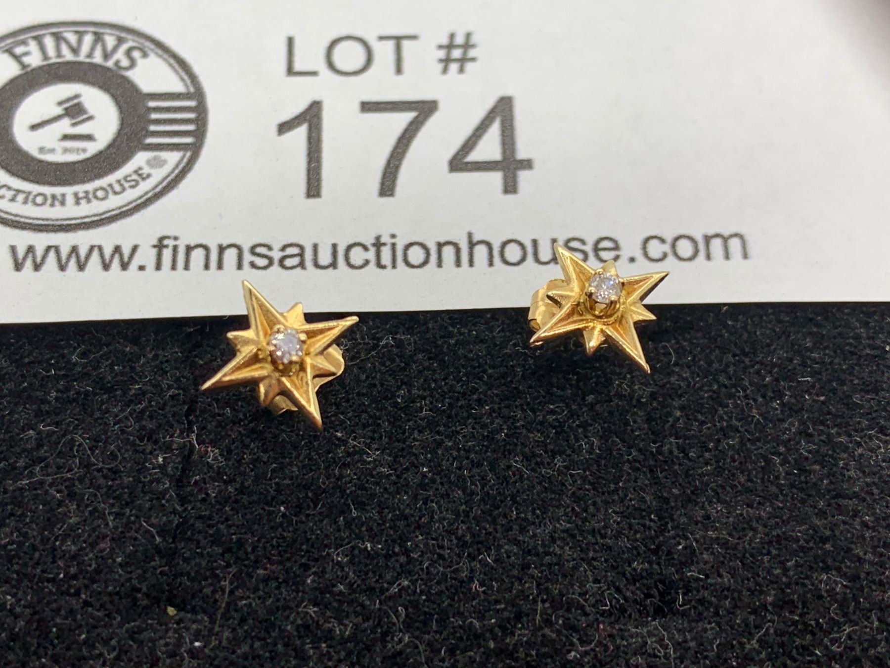 Good Pair of 14k Gold & Diamond Star Stud Earrings