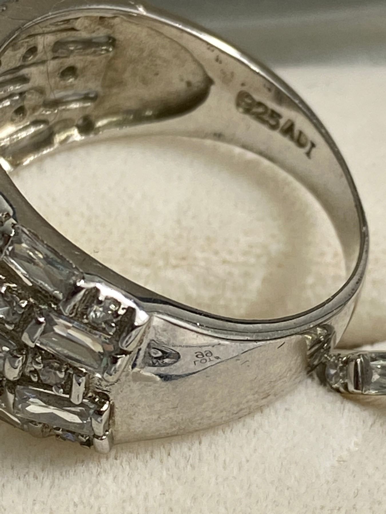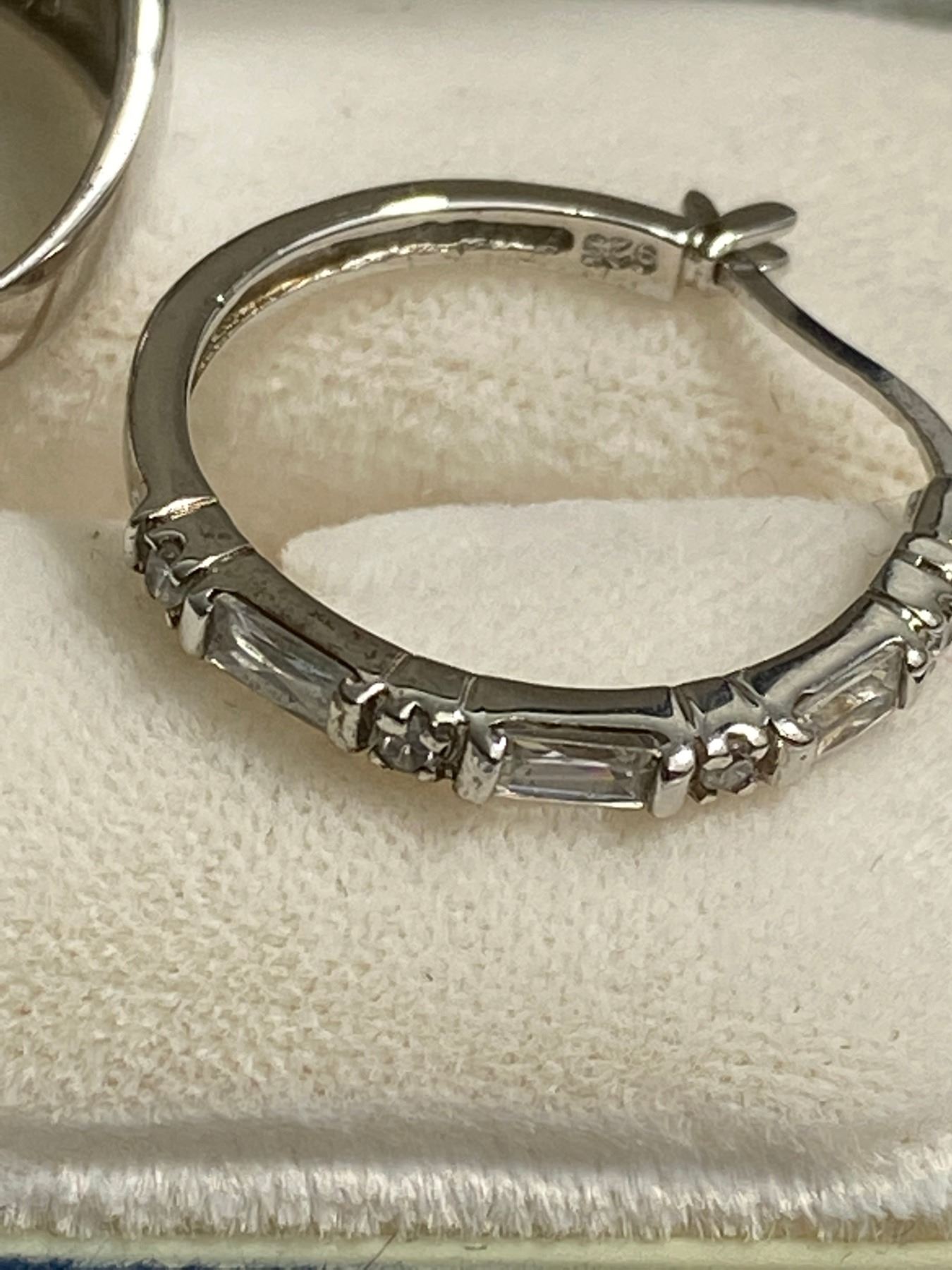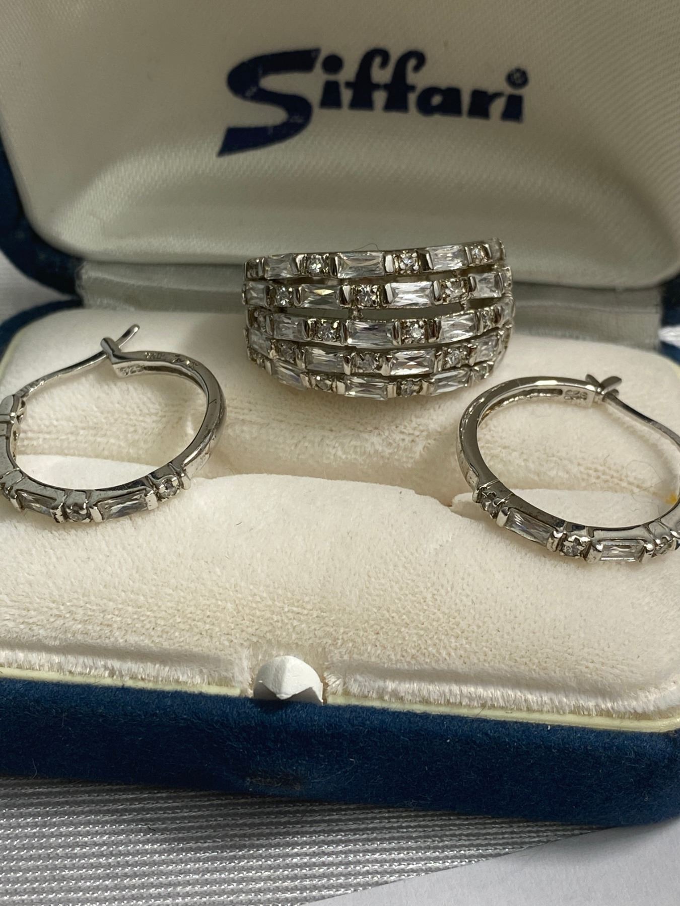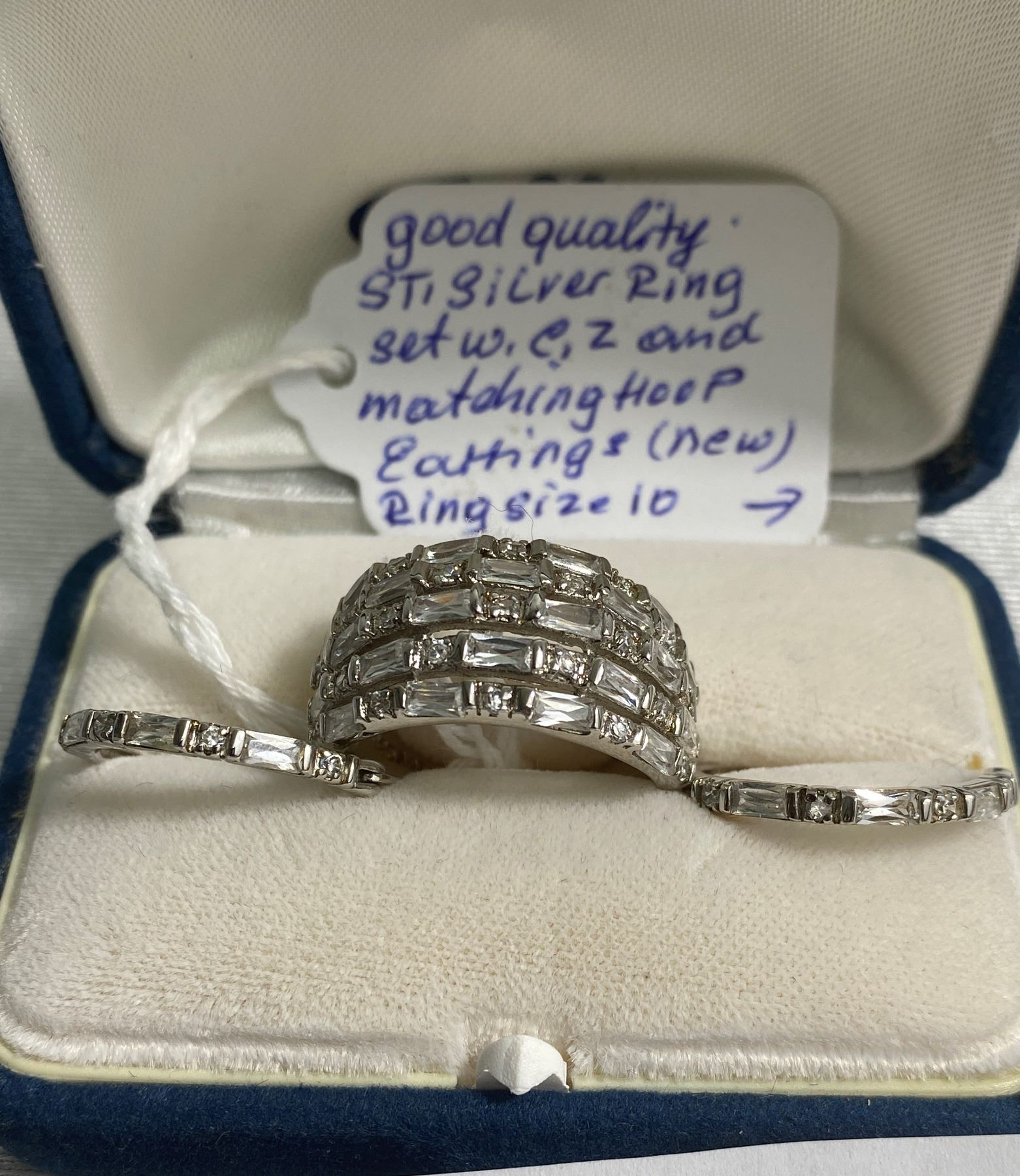 Good Quality Sterling Silver Ring Set with Cubic Zirconia and Matching Hoop Earrings. Size 10 10 gr