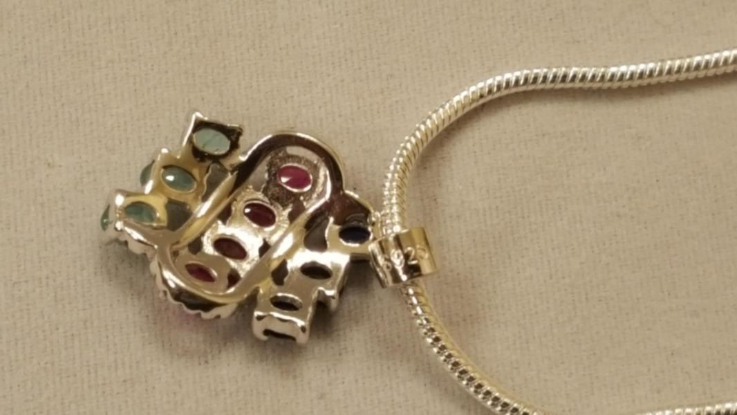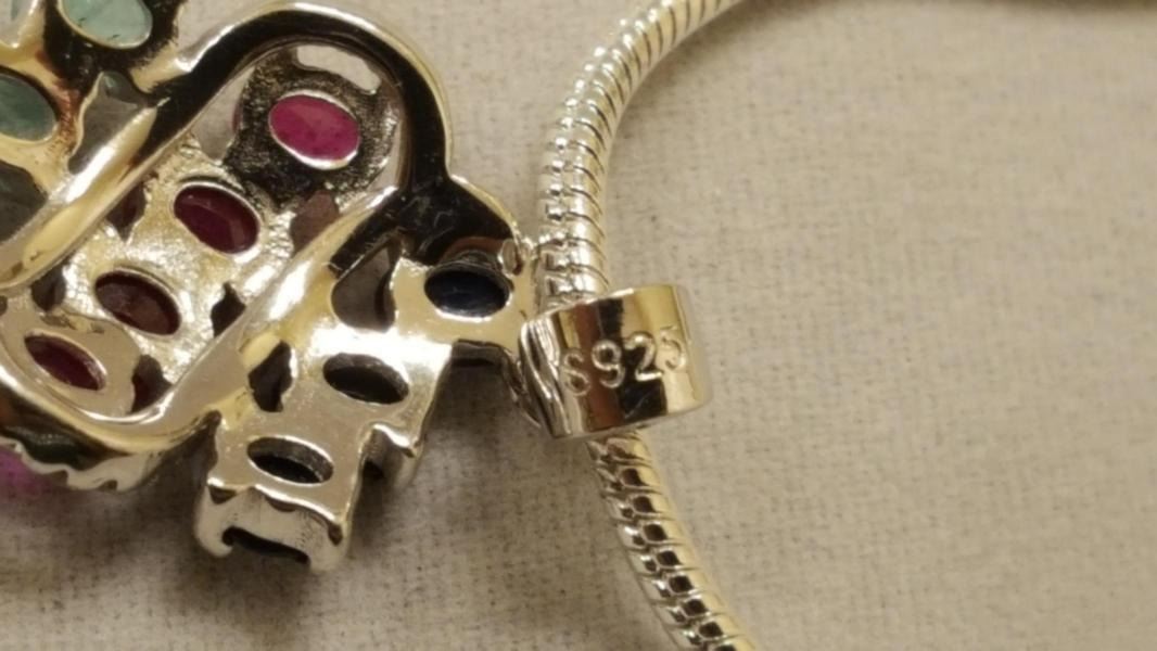Gorgeous 11.5 ct Blue Sapphire, Ruby and Emerald Pendant Mounted In Solid .925 Sterling Silver. Pendant Includes 20 2 mm. Chain. 57 cttw.