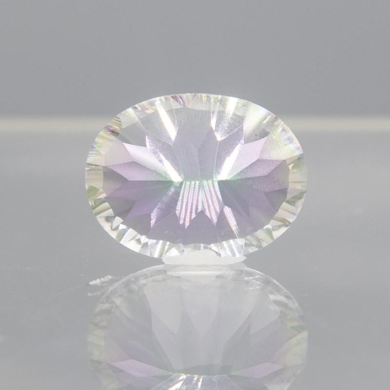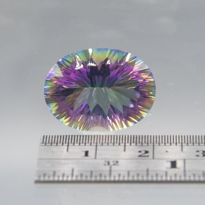 Gorgeous 16.18 Ct Certified Mystic Topaz Soliare. Fancy concave oval cut measuring 20 x 15 mm.This mystic topaz is VVS1 rated and includes certification card. The replacement value is $890. Please see certification for further details.