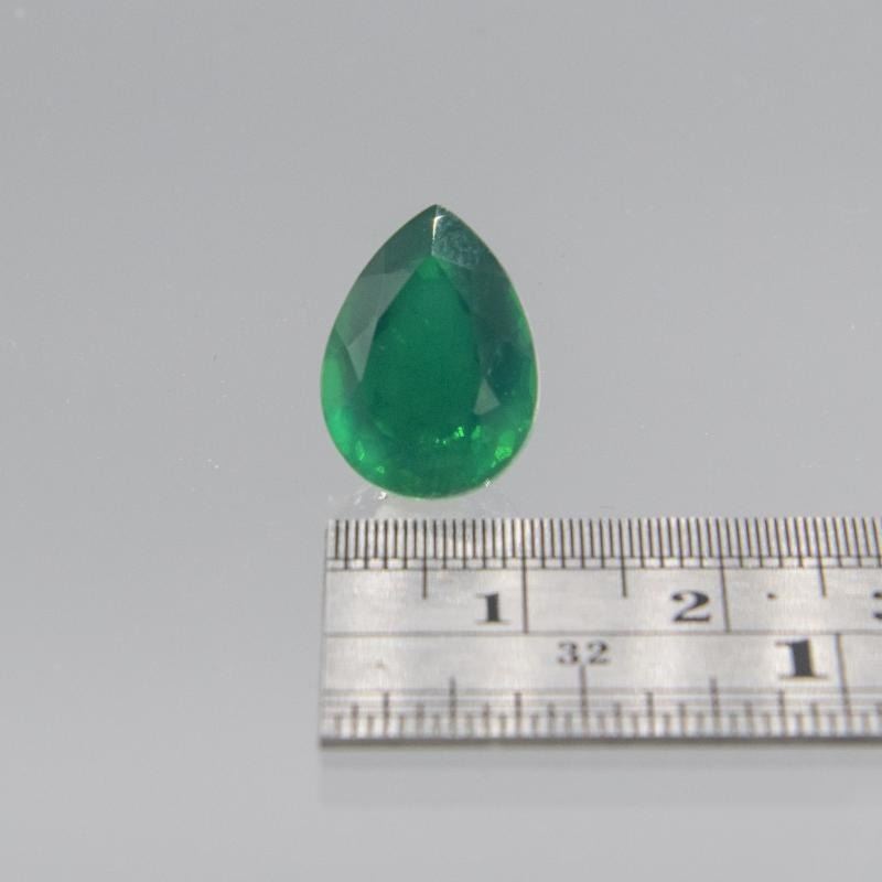 Simply Gorgeous 7.92 Ct. Russian Created Emerald Centerstone. Beautiful Bright Emerald Green Hue. Pear Cut. This Lab Created Emerald Displays Strong Vivid Saturation And Exquisite Clarity. Near Flawless And Ready To Mount. This stone is mesmerizing !