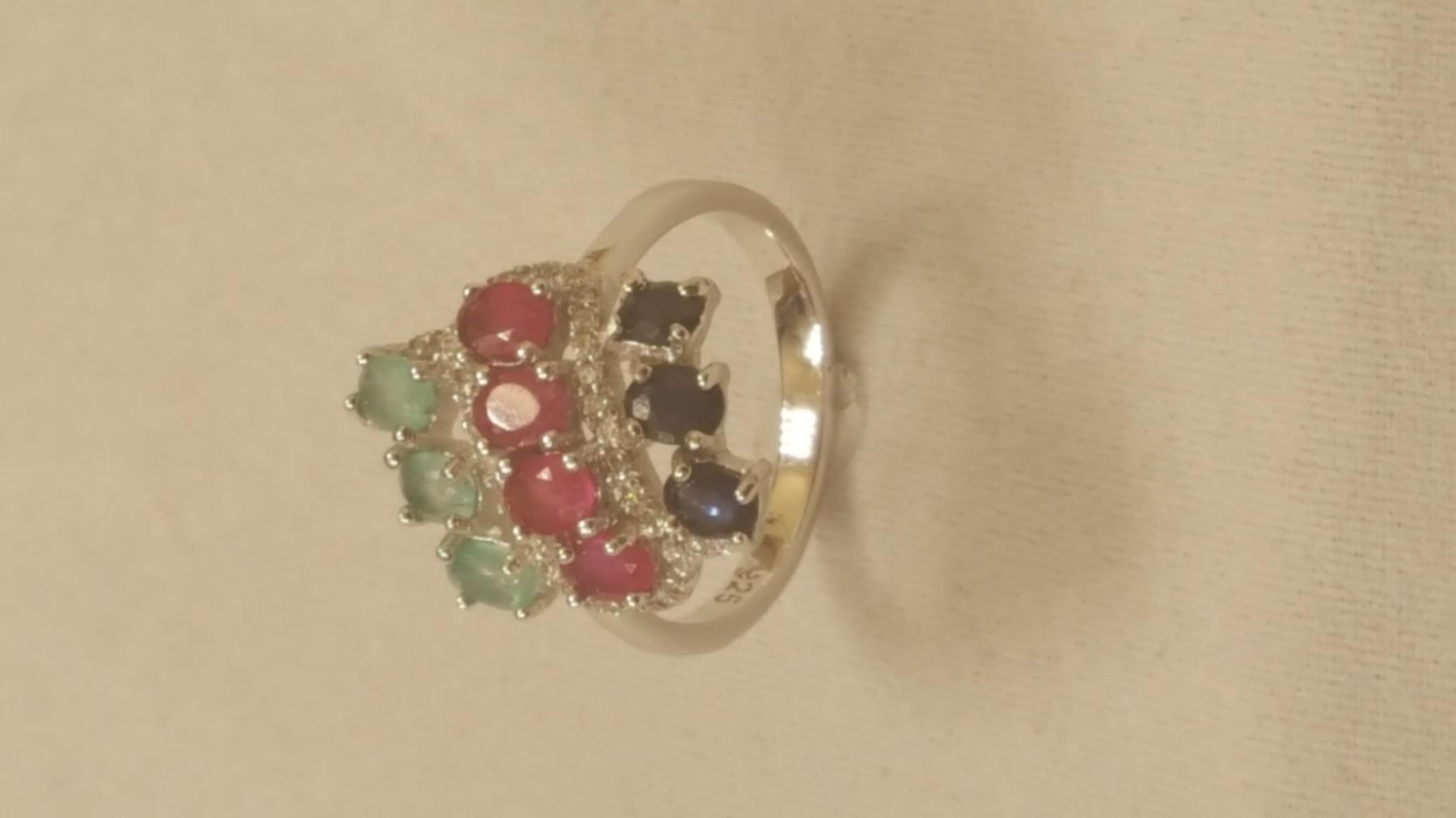 Gorgeous 8.75 ct Blue Sapphire, Ruby and Emerald Ring.