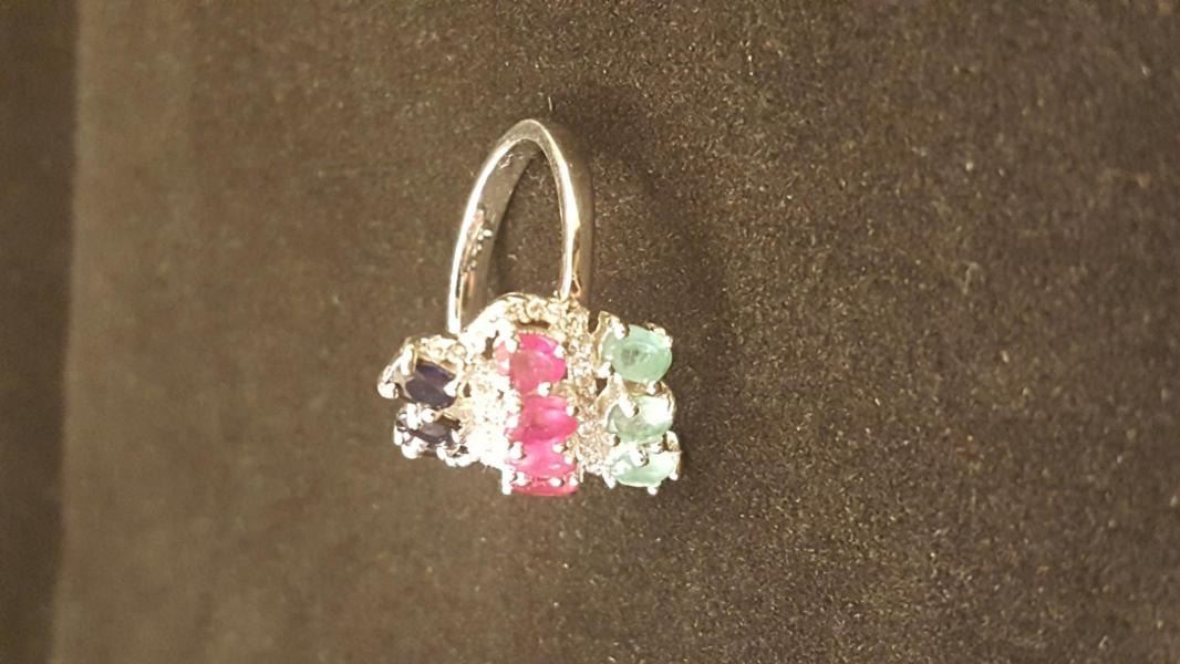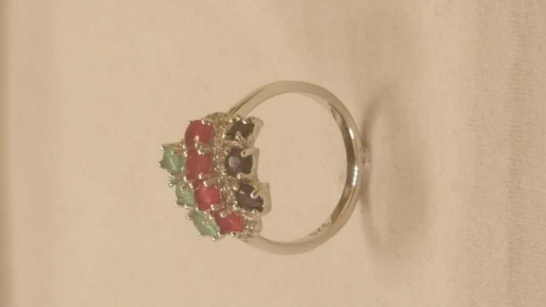 Gorgeous 8.75 ct Blue Sapphire, Ruby and Emerald Ring.
