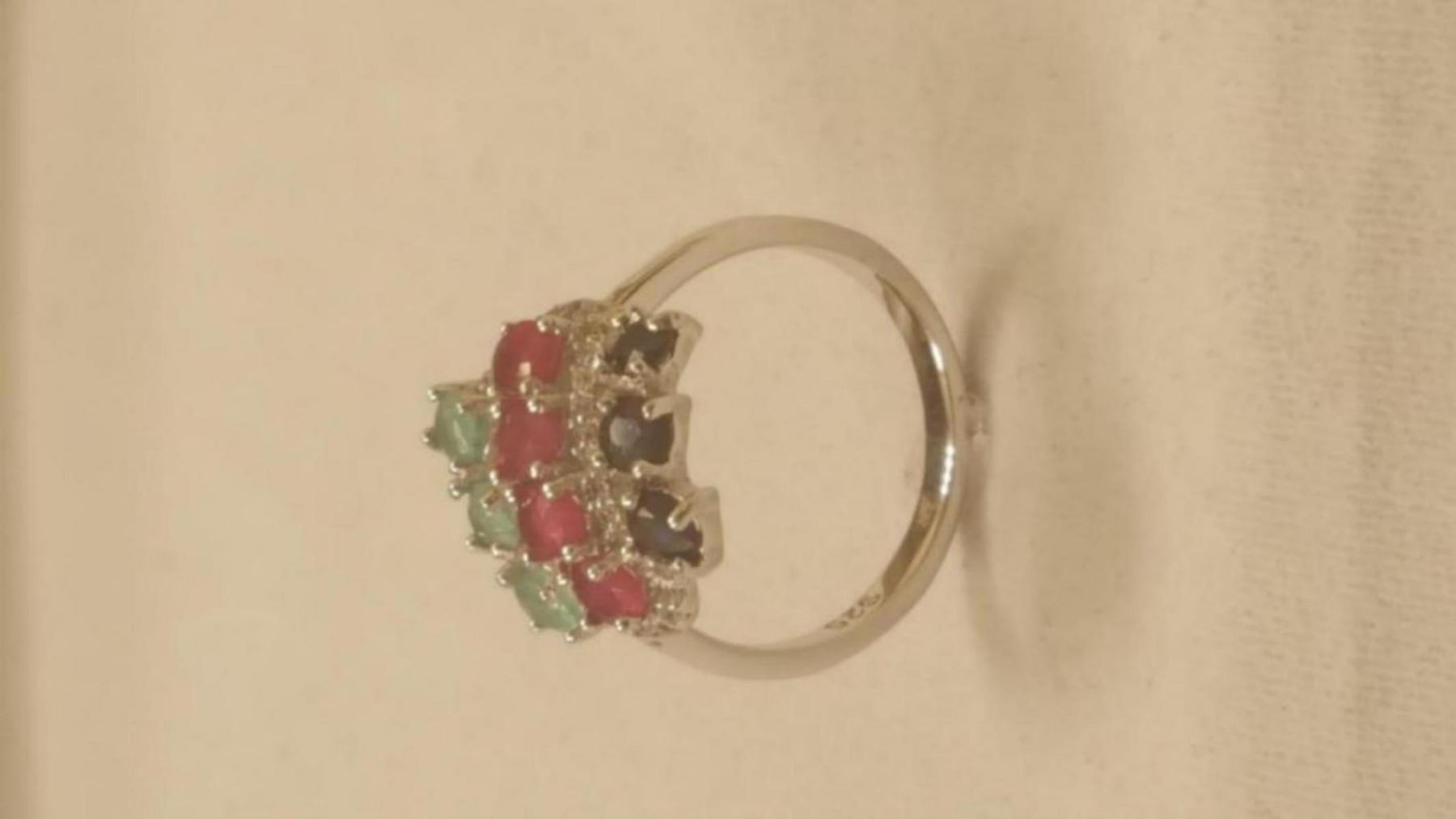 Gorgeous 8.75 ct Blue Sapphire, Ruby and Emerald Ring.