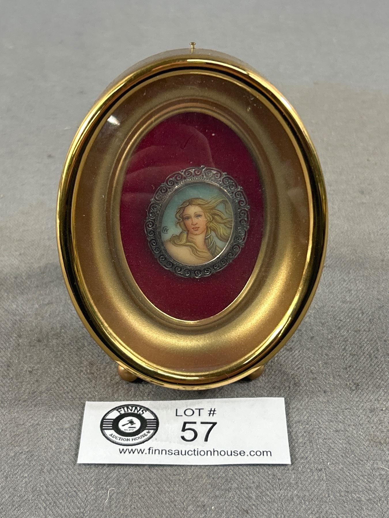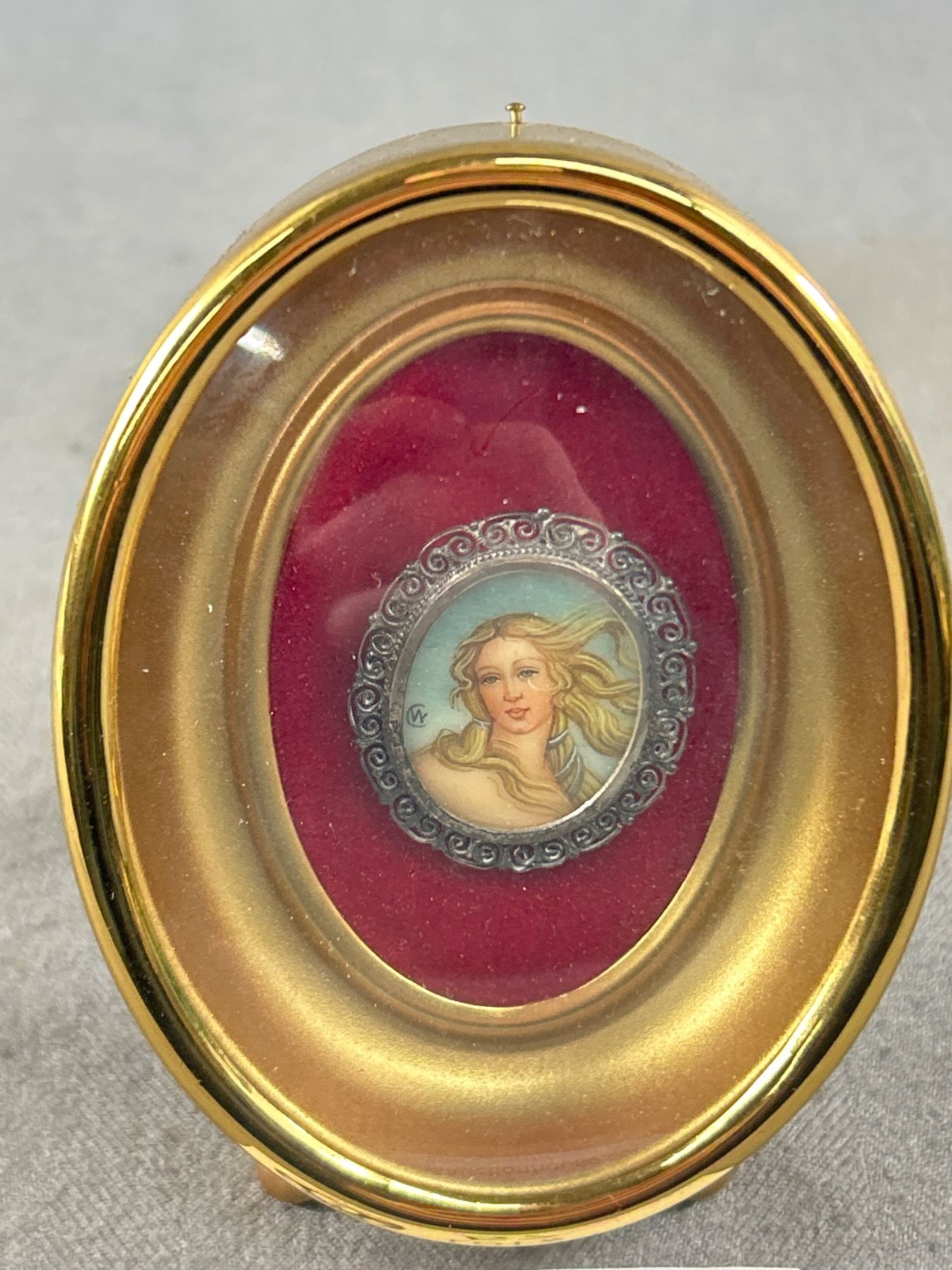 Gorgeous Antique Handpainted & Signed Brooch/Pendant - Marked 800 Silver (in Brass Shadowbox Frame)