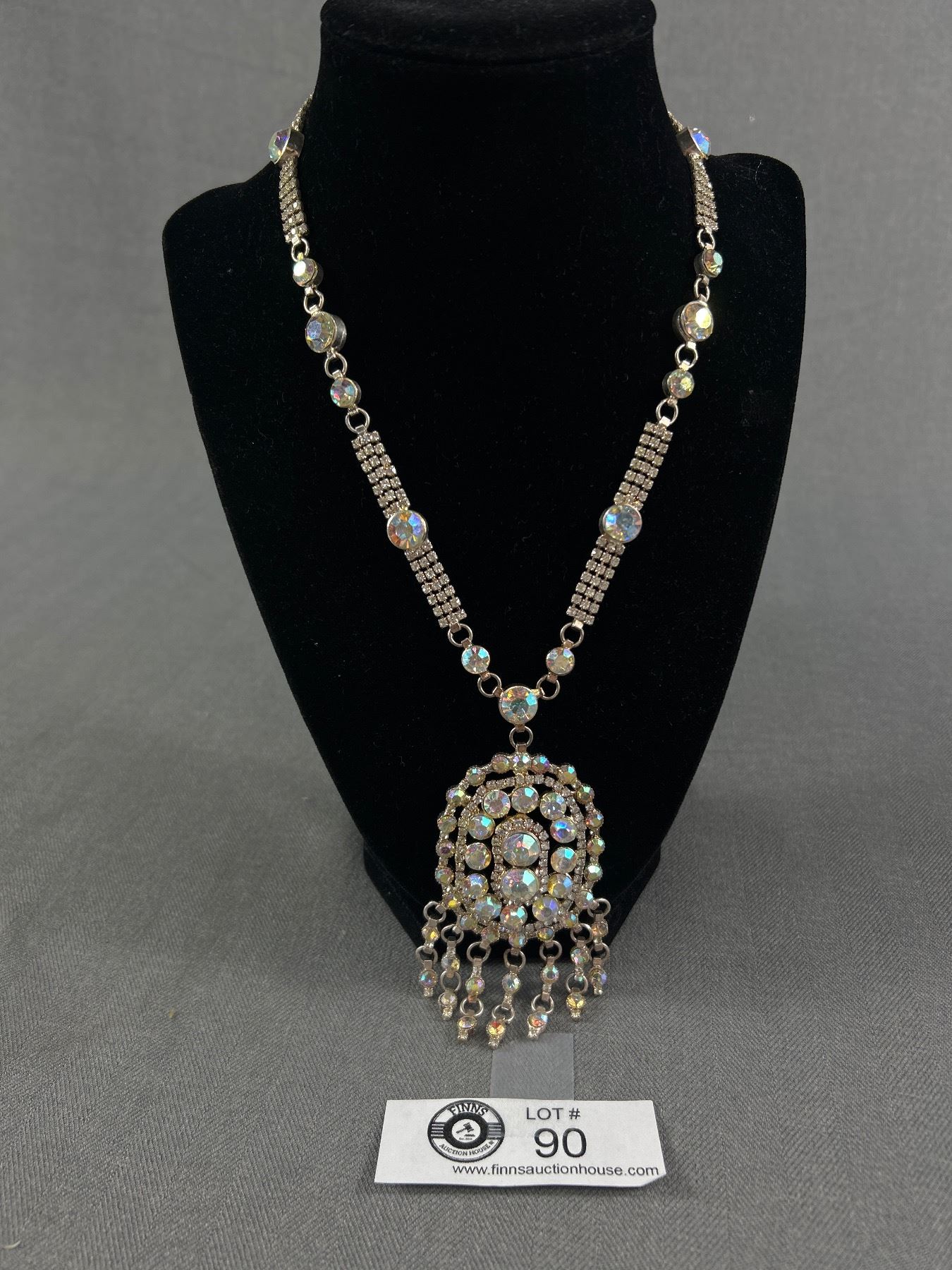 Gorgeous Borealis Rhinestones Pendant w/ Chain Necklace, 17-21" L In Good Condition