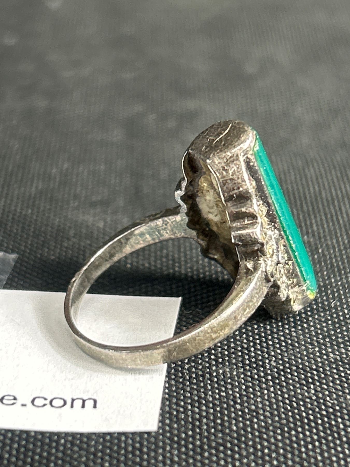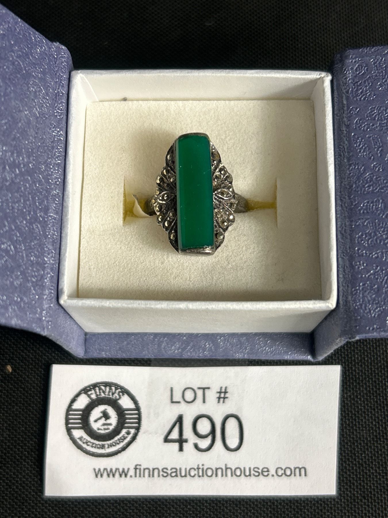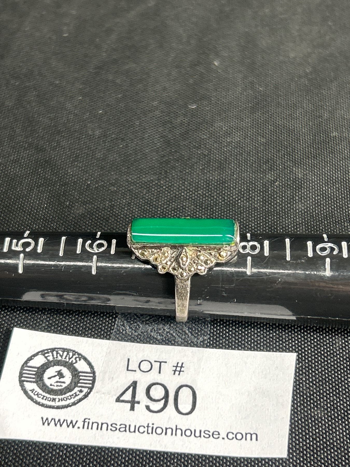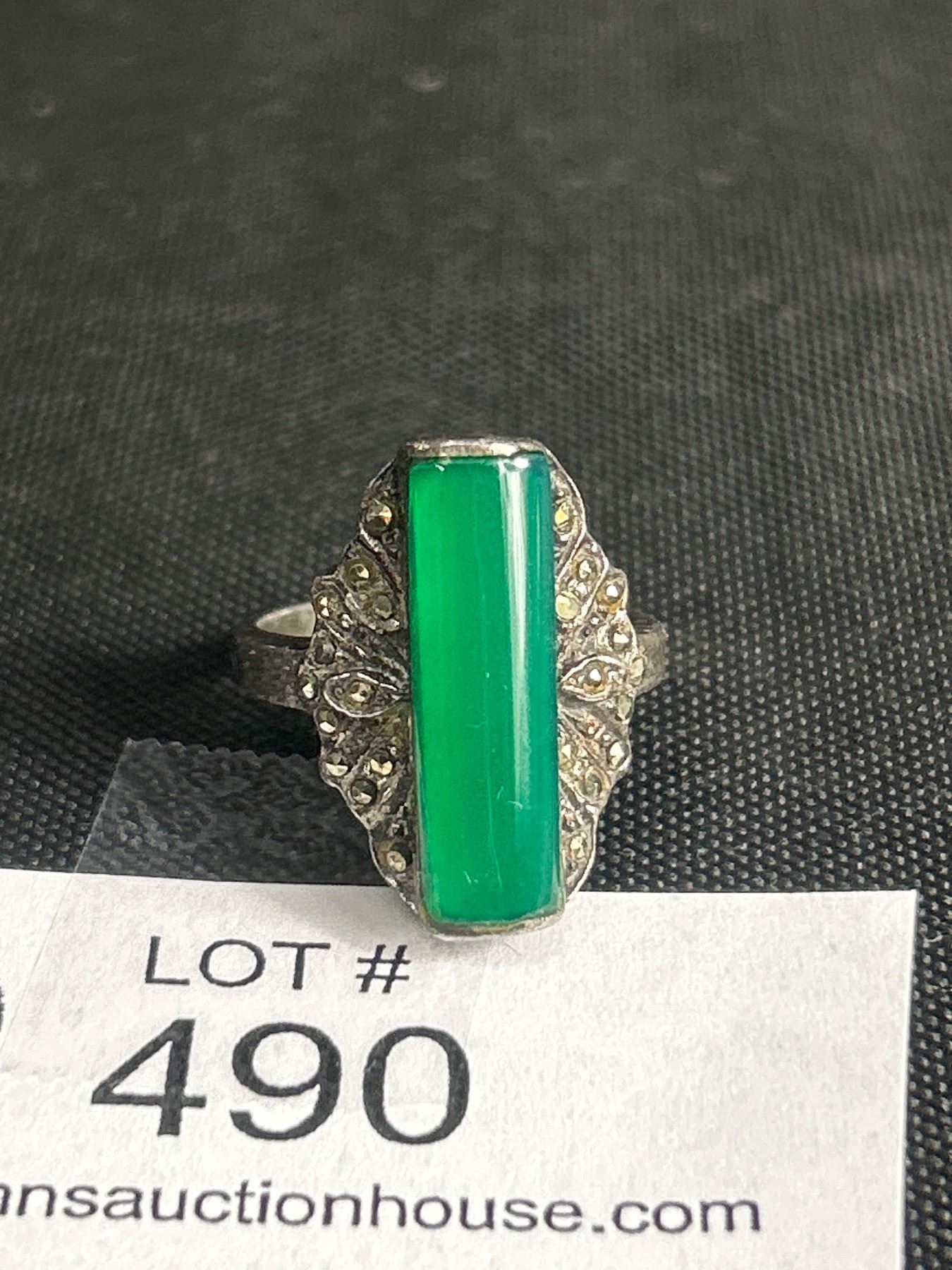 Gorgeous Chrysoprase Sterling Silver Art Deco Ring. Marked 925