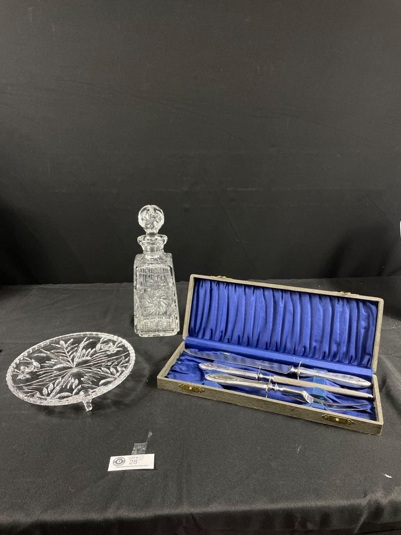 Gorgeous Crystal Decanter -11" T, Footed Platter & Cased Community Silverplate Carving Set