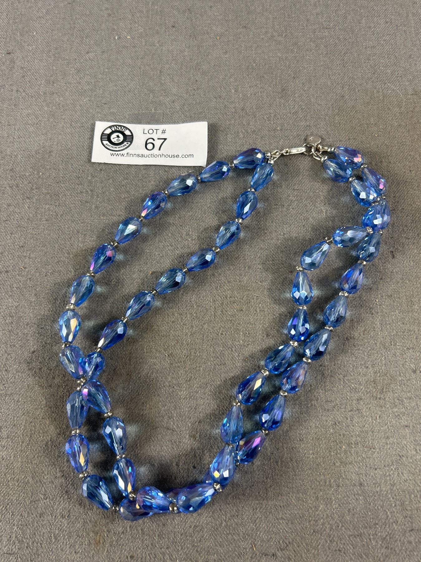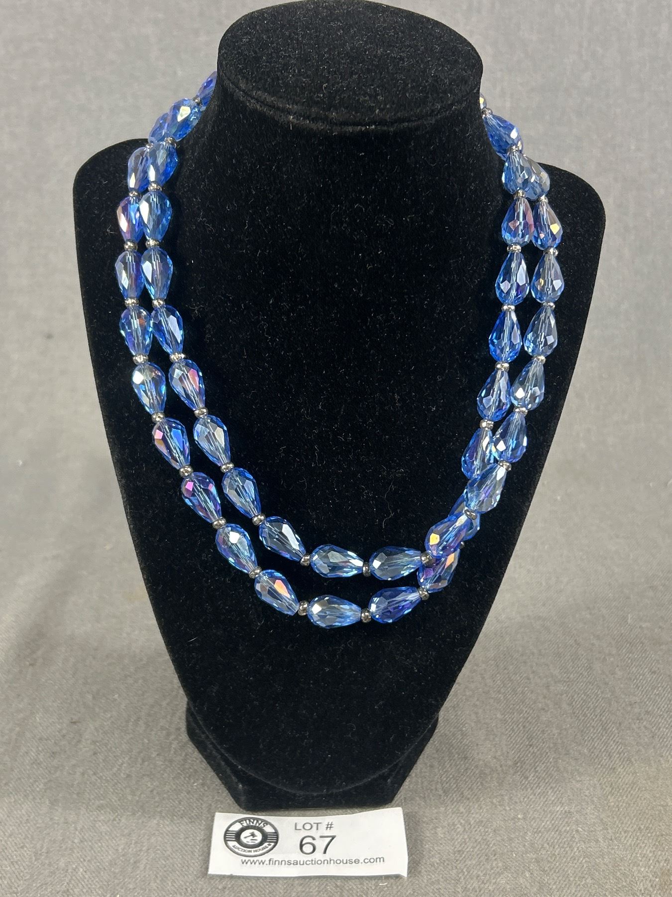 Gorgeous Double Strand Blue Crystal Necklace w/ Sterling Clasp