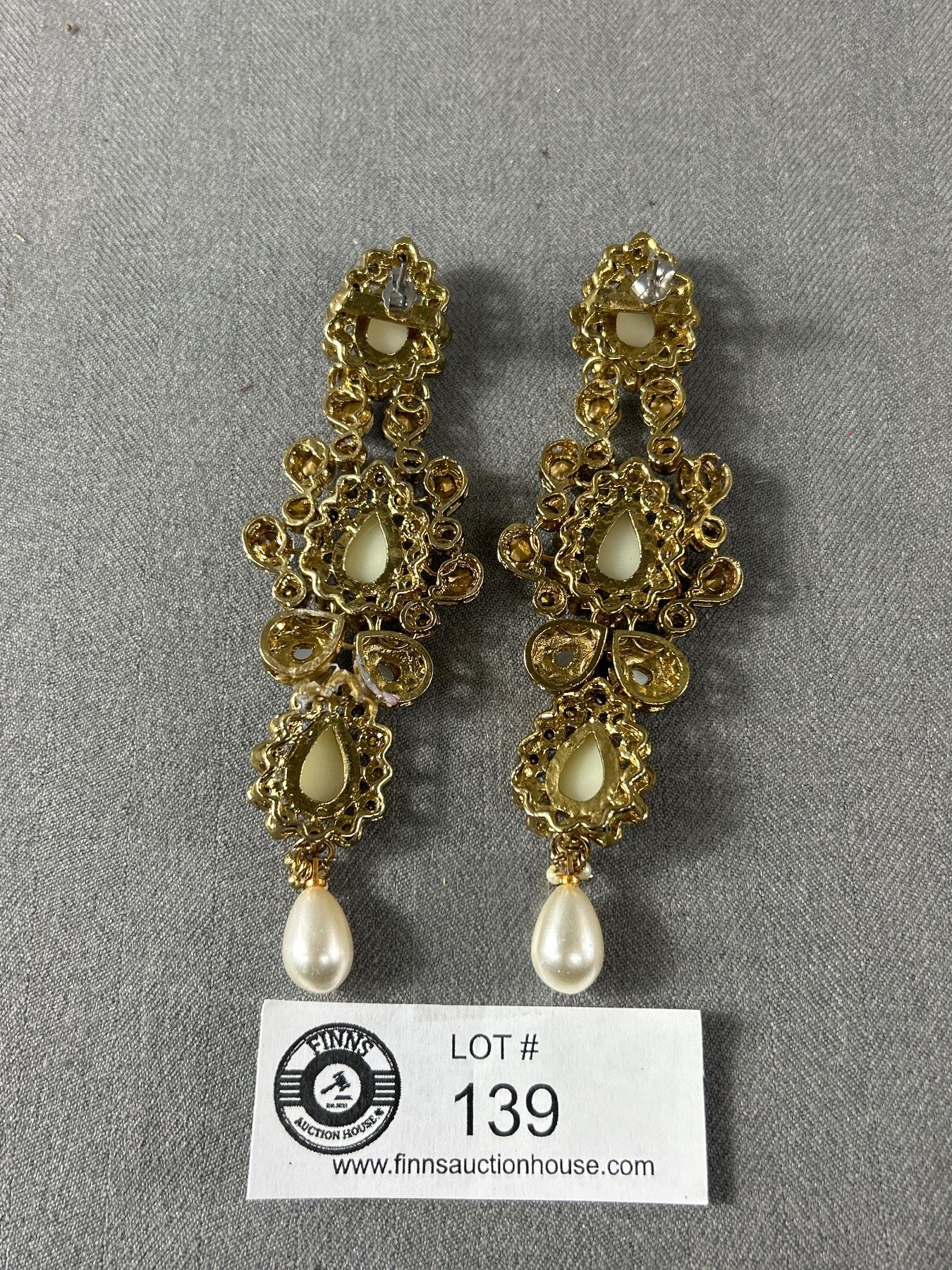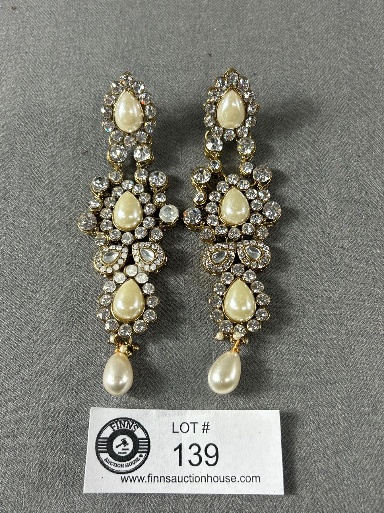 Gorgeous Pearls and Rhinestones Long Dangle Earrings