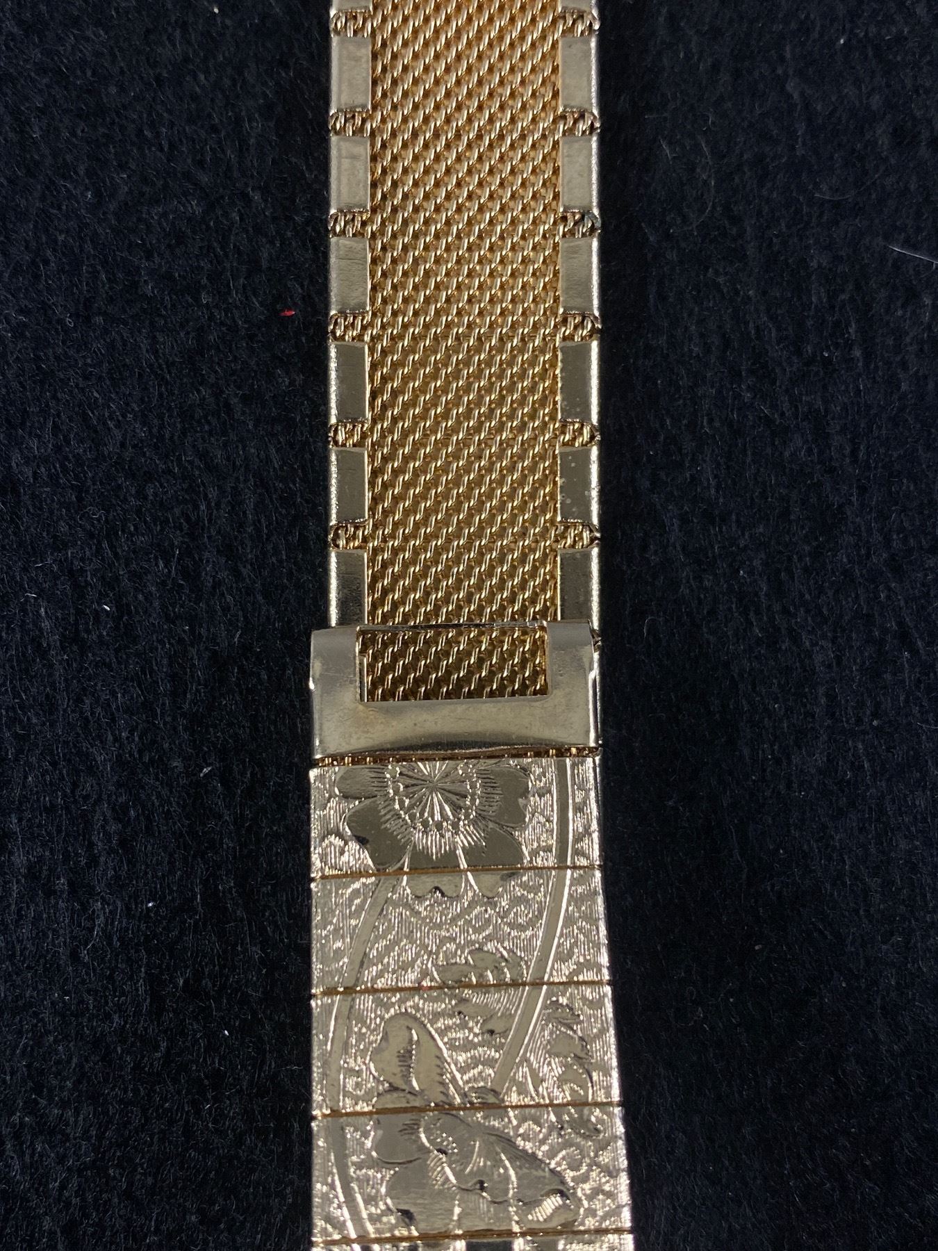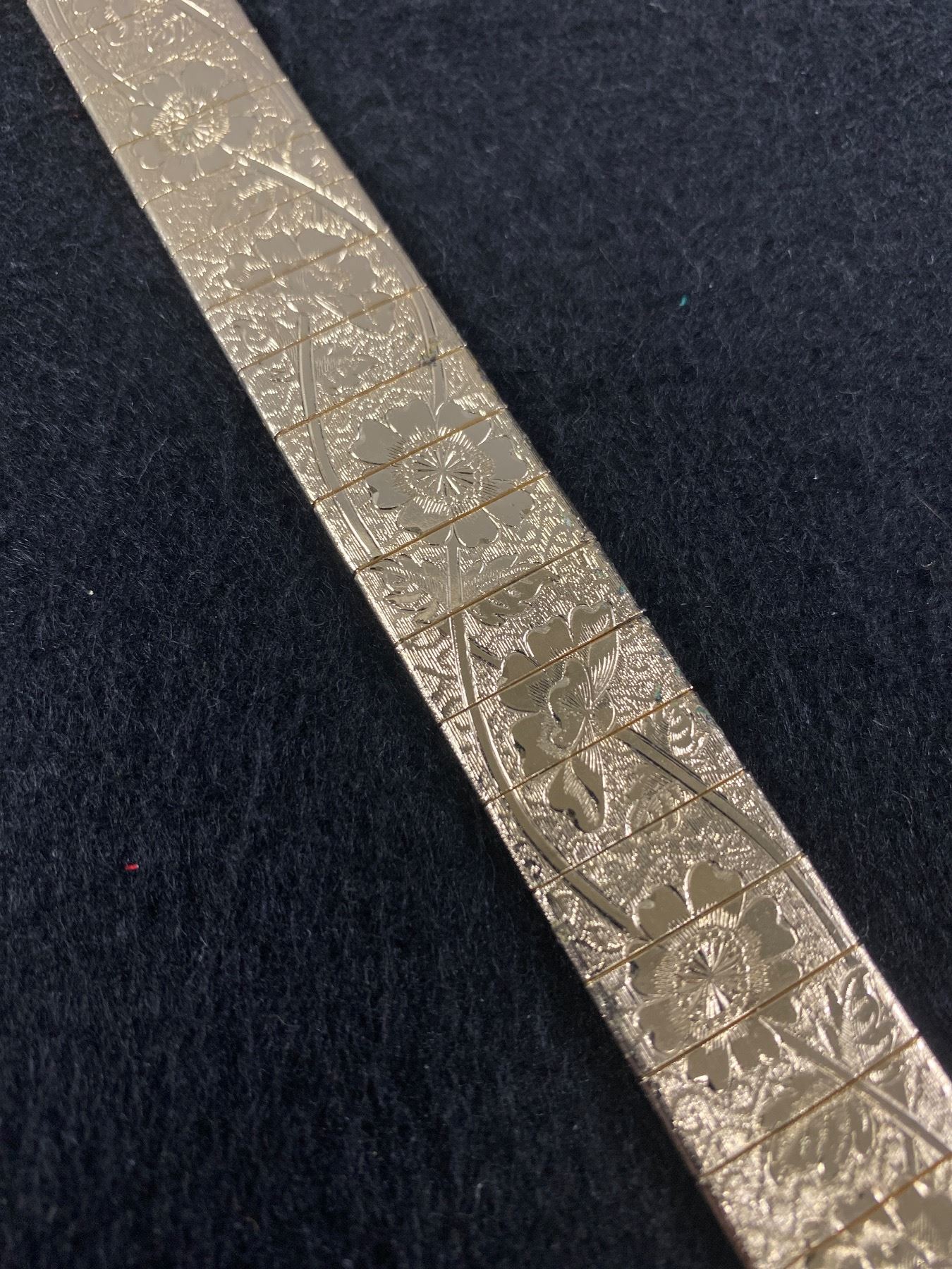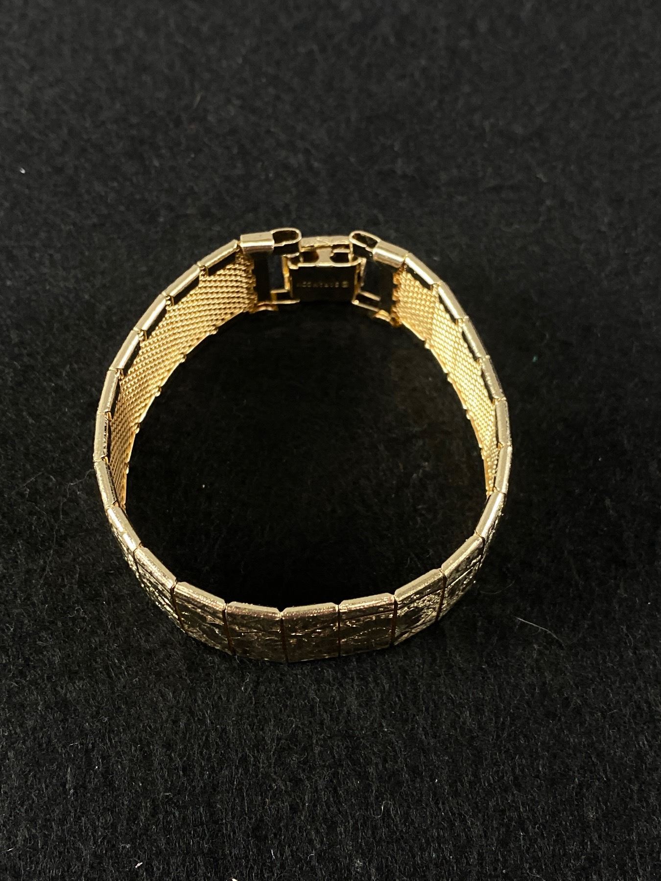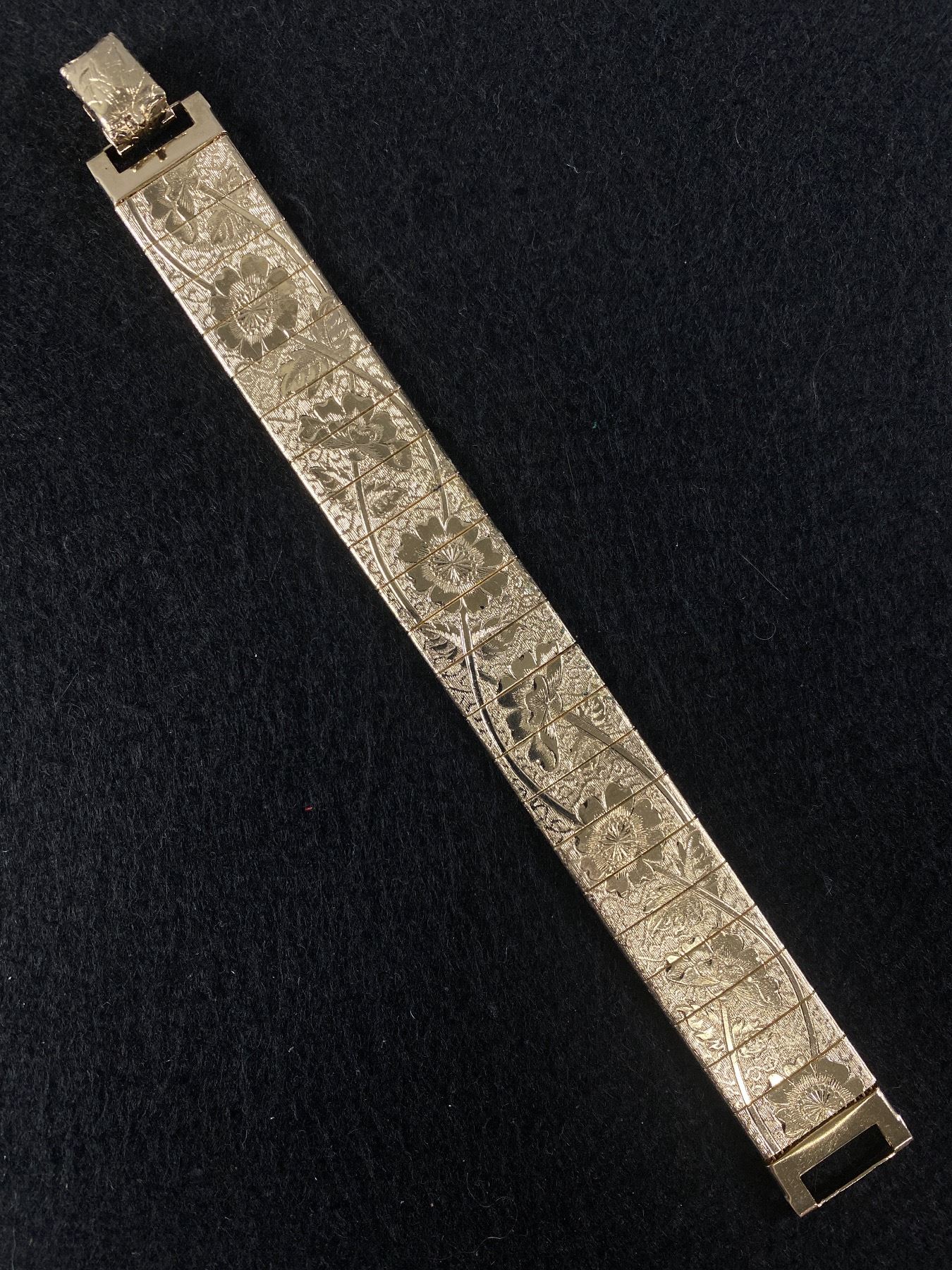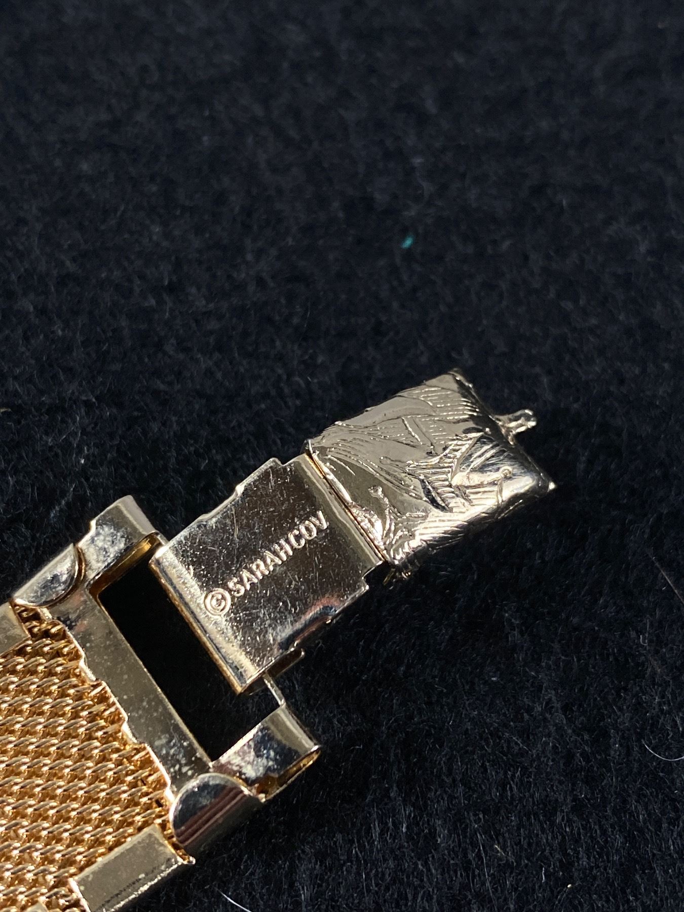 Gorgeous Signed Sarah Cov Mesh Bracelet w/Goldtone Etched Floral Mural