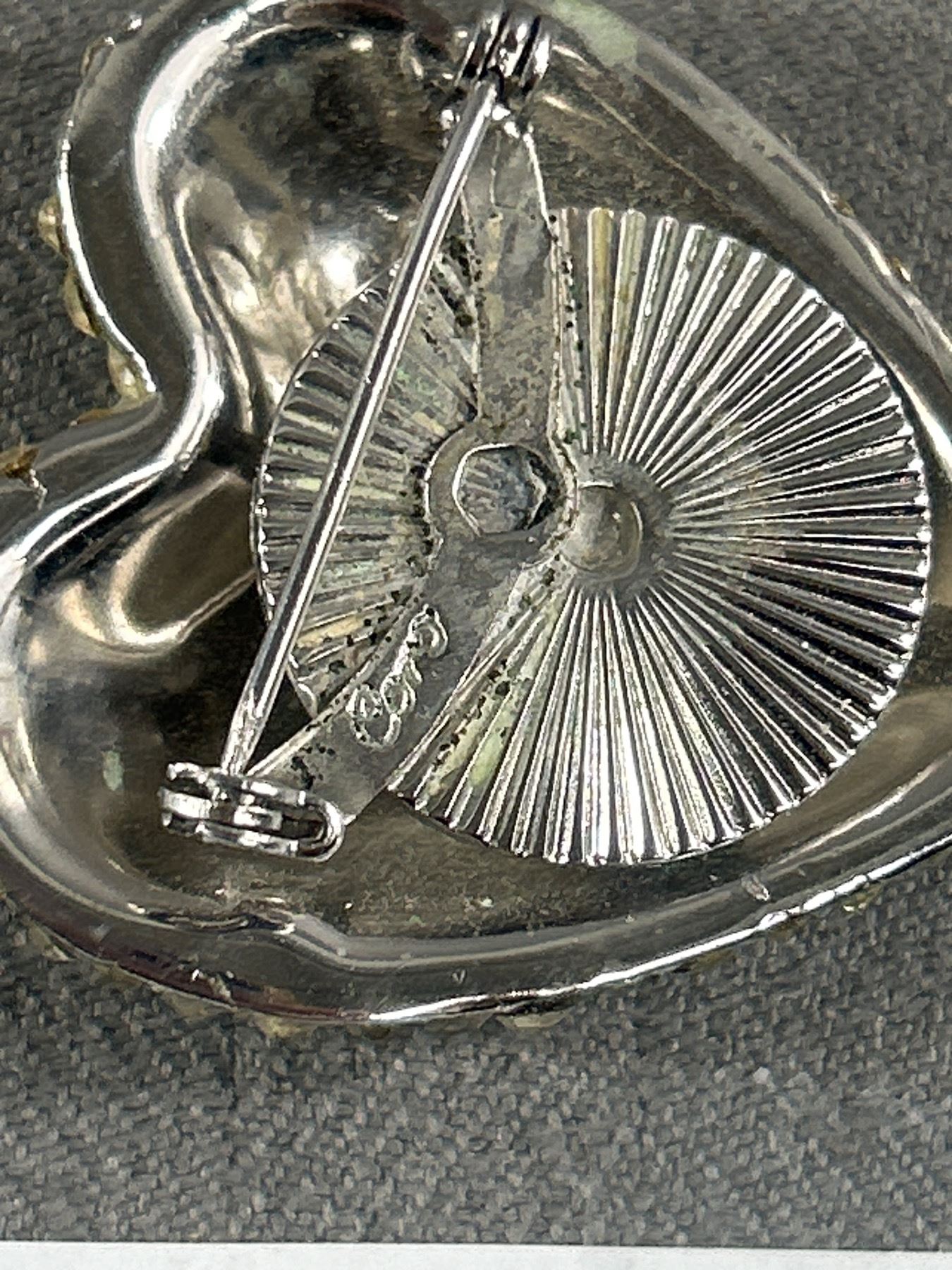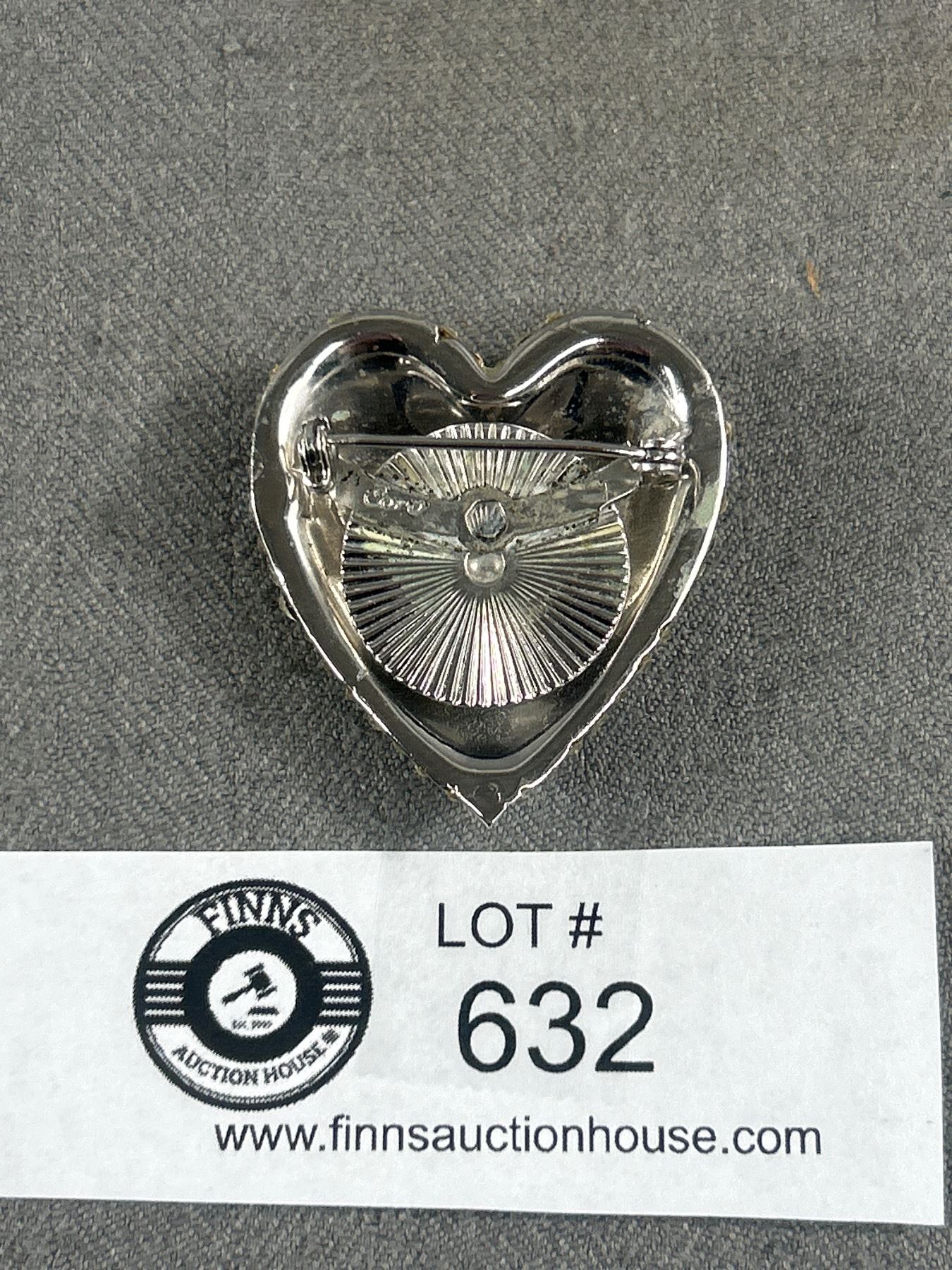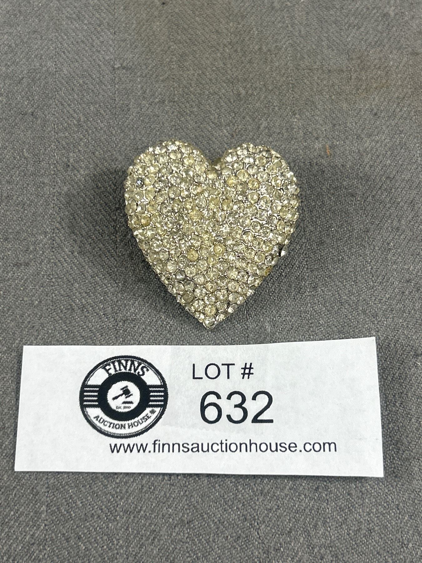 Gorgeous Silvertone Rhinestone Heart Pin Marked Coro