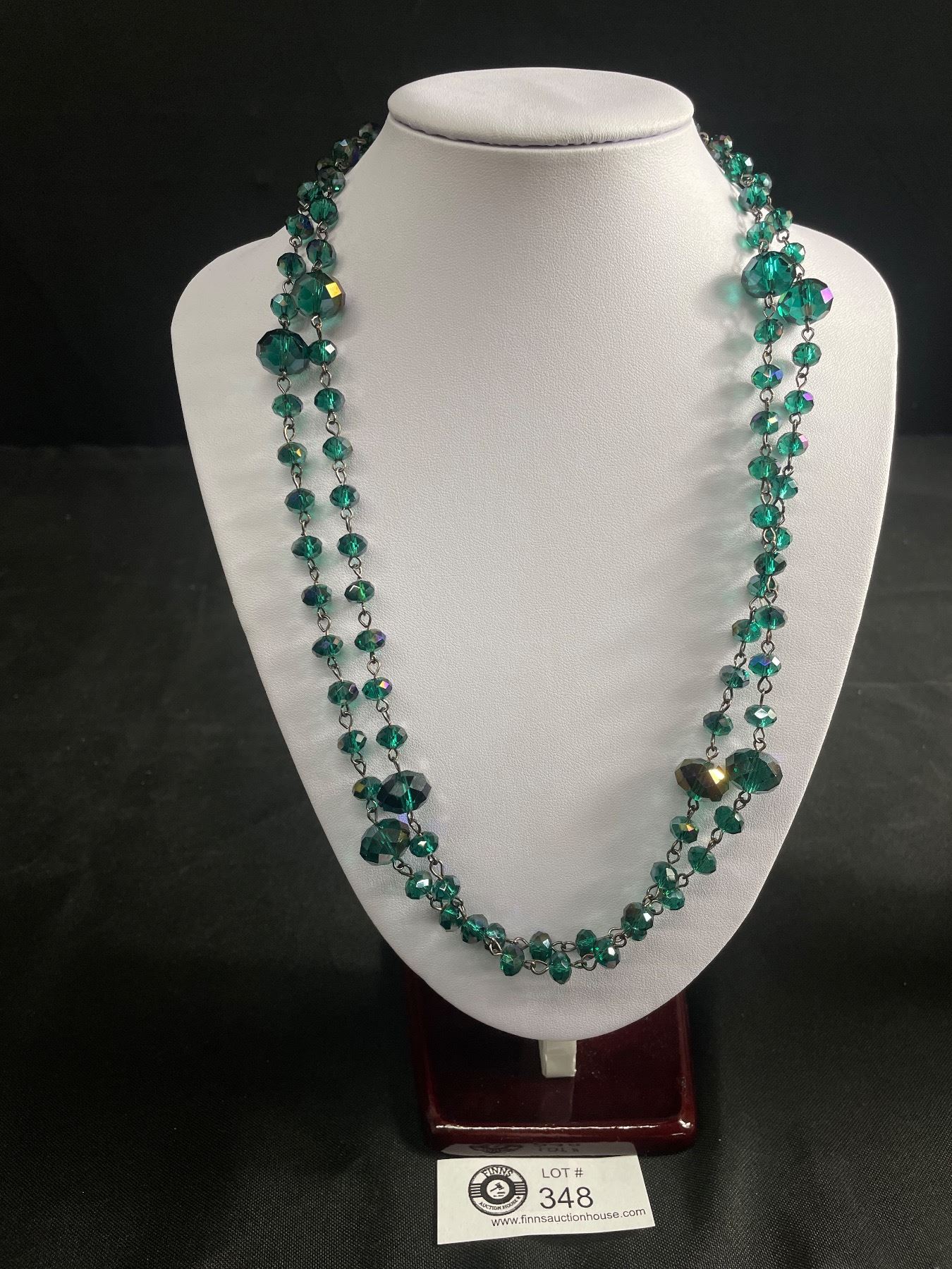 Gorgeous Teal Colour Crystal Necklace Double Length