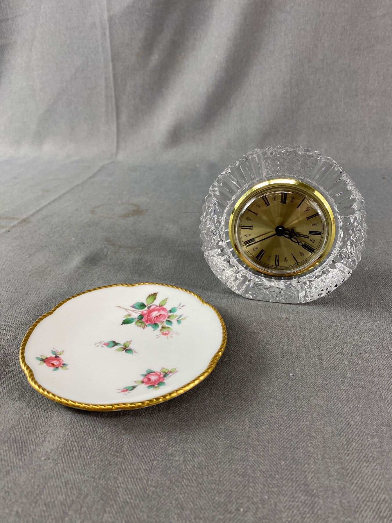 Gorgeous Tyrone Crystal Circular Clock- Made in Ireland-Working & Spode Pin Dish