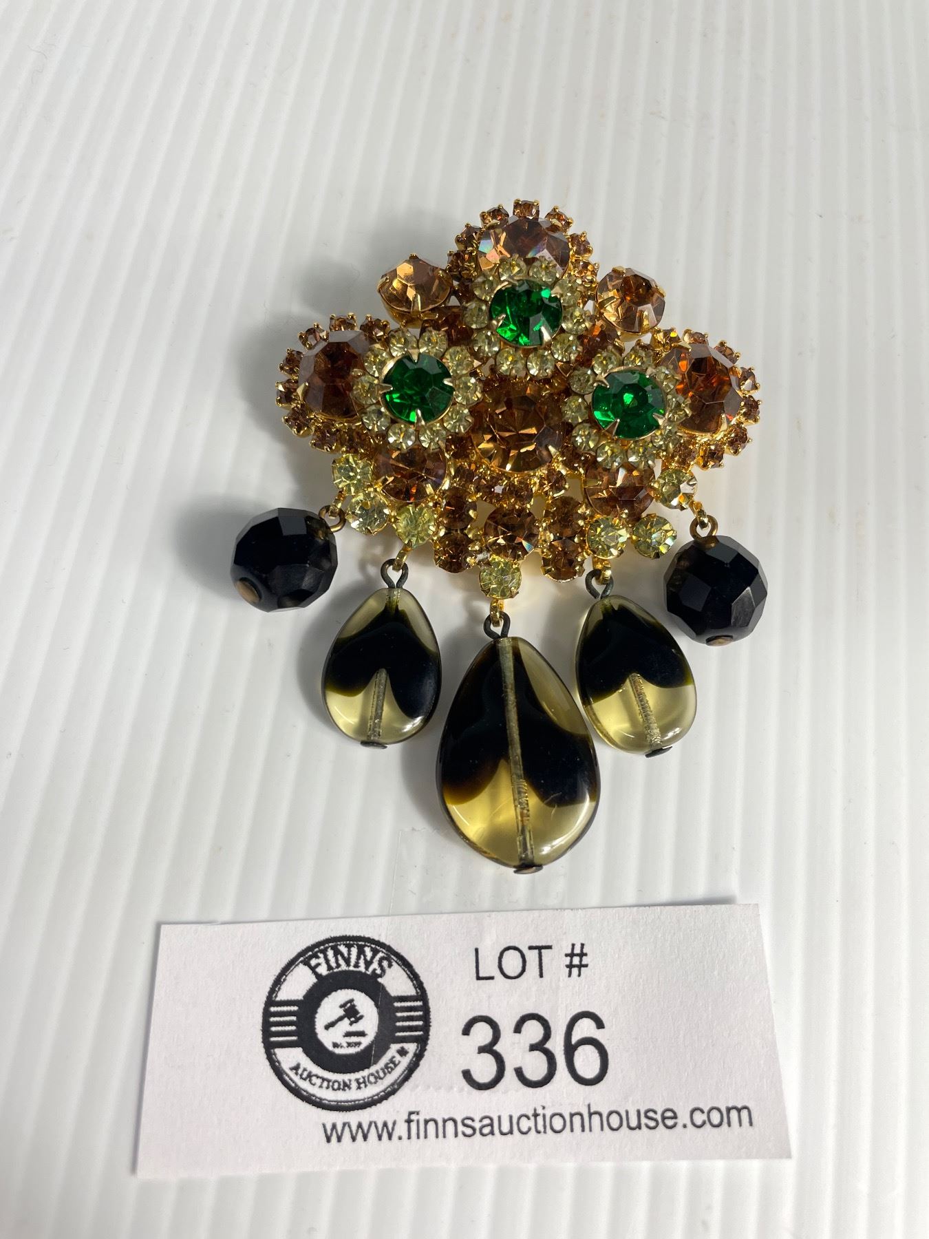 Gorgeous Vibrant Rhinestone Brooch, Good Condition