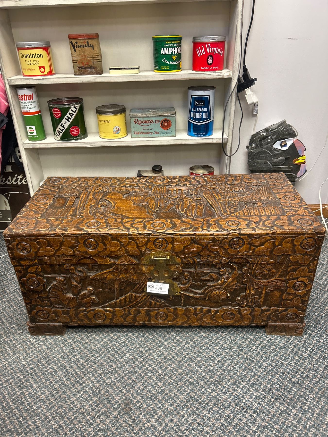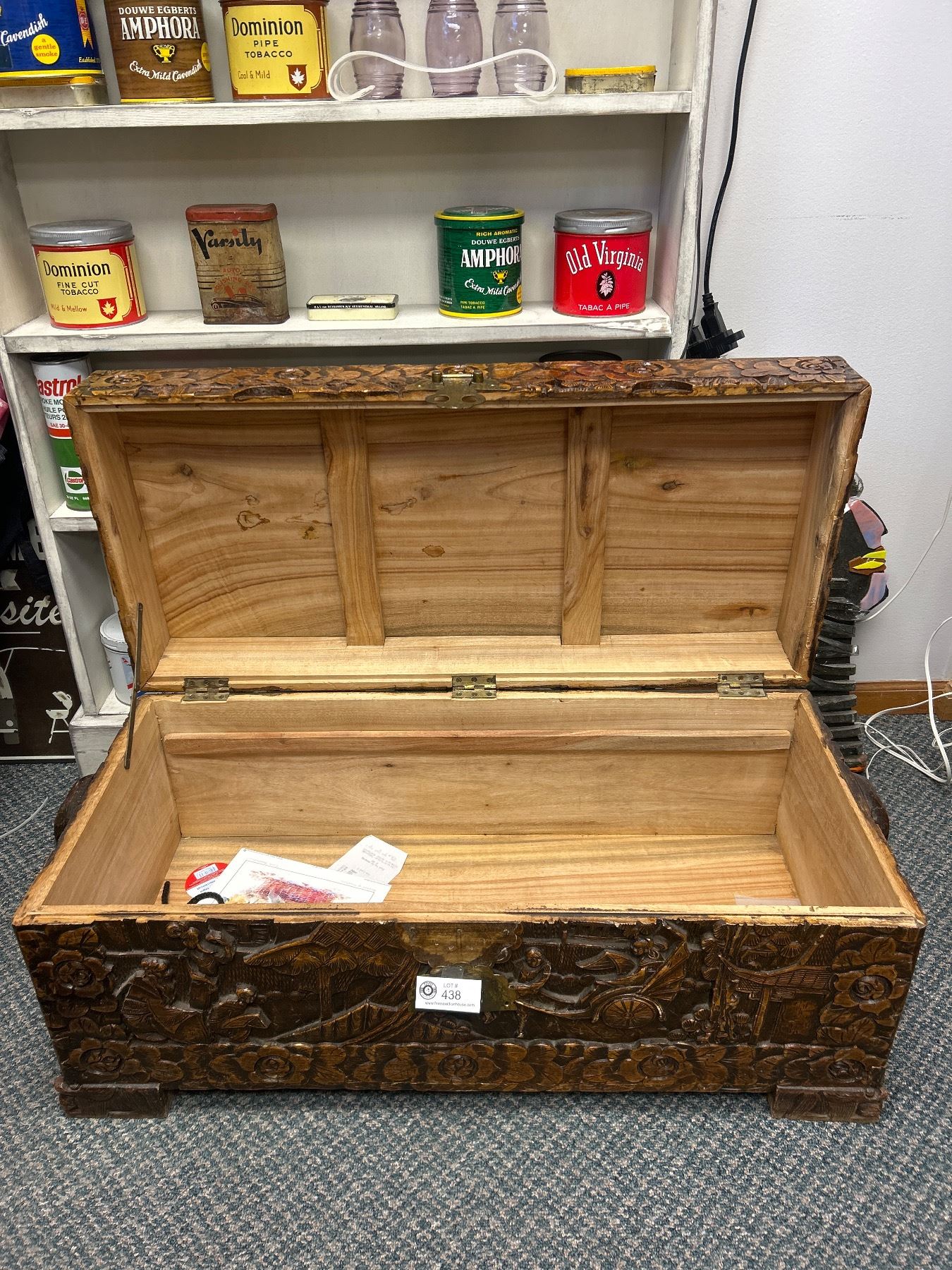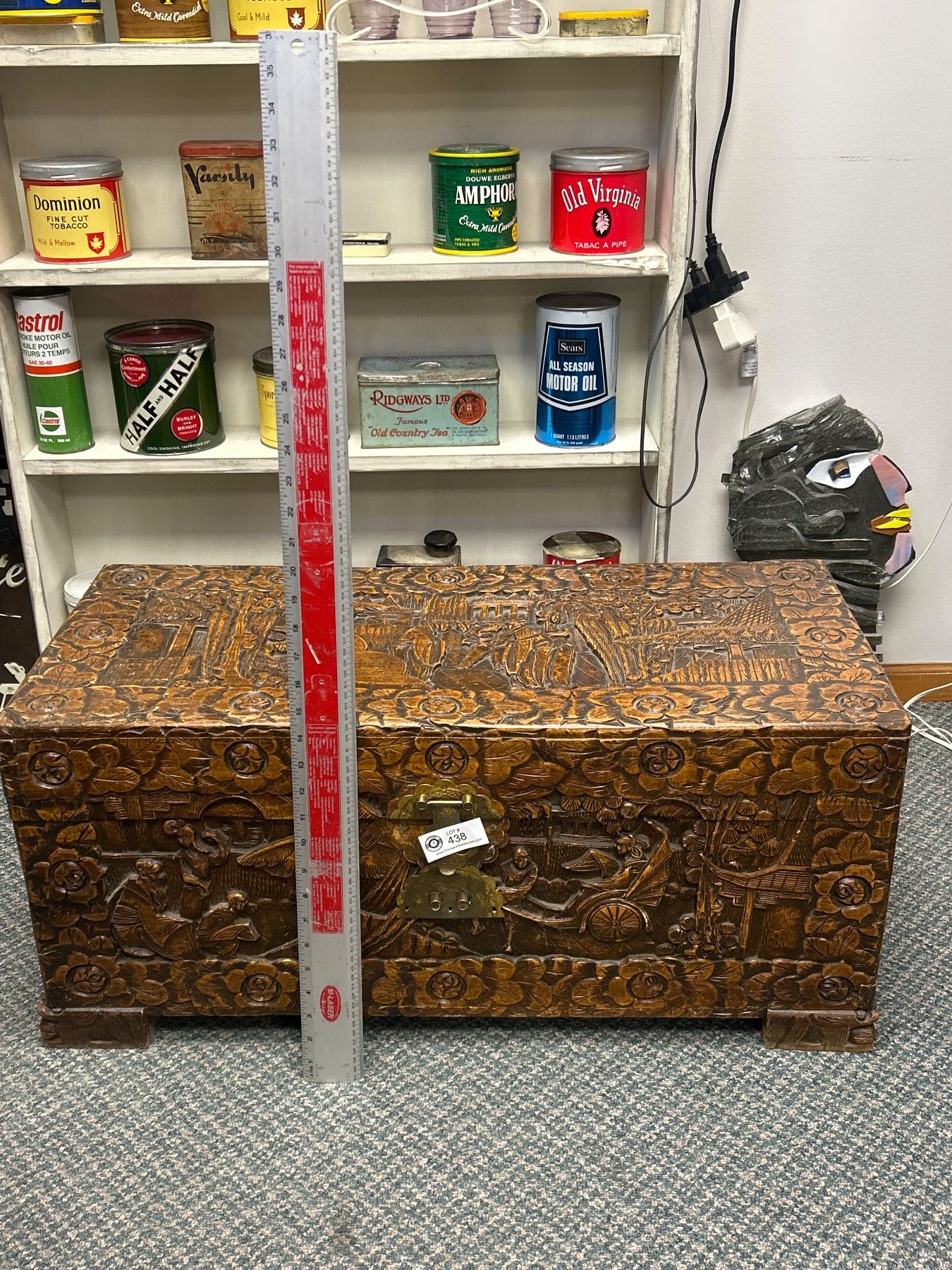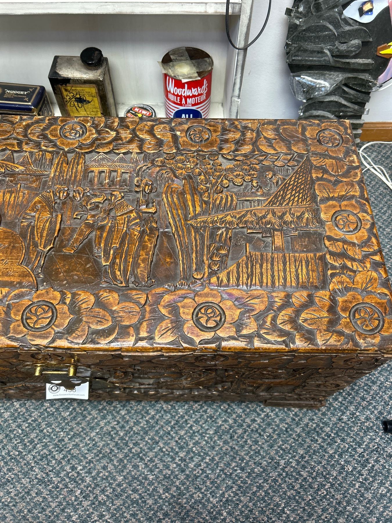 Gorgeous Vintage Completed Carved Wood Asian Chest. NO SHIPPING. Approx. 14.5" H x 14" x 31.5"