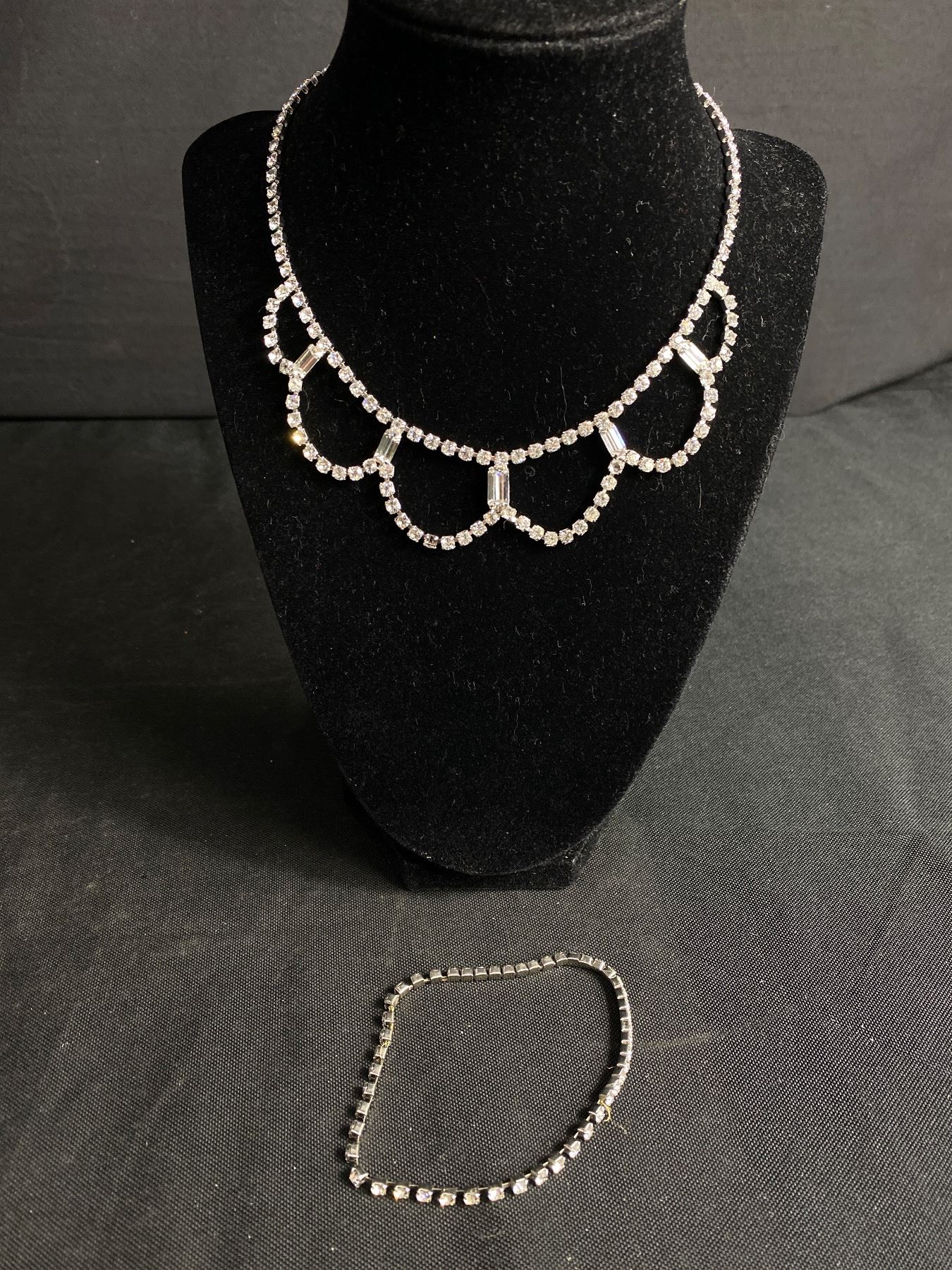 Gorgeous Vintage Very Fine Rhinestone Necklace and Bracelet.