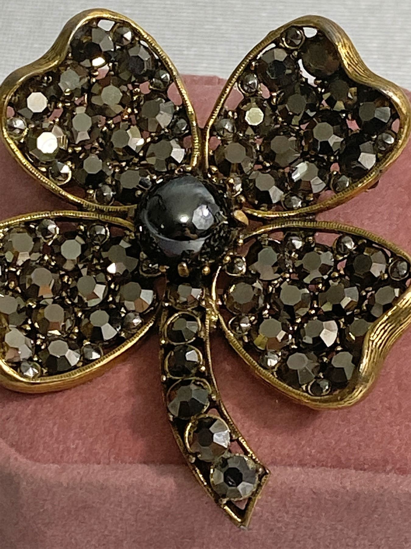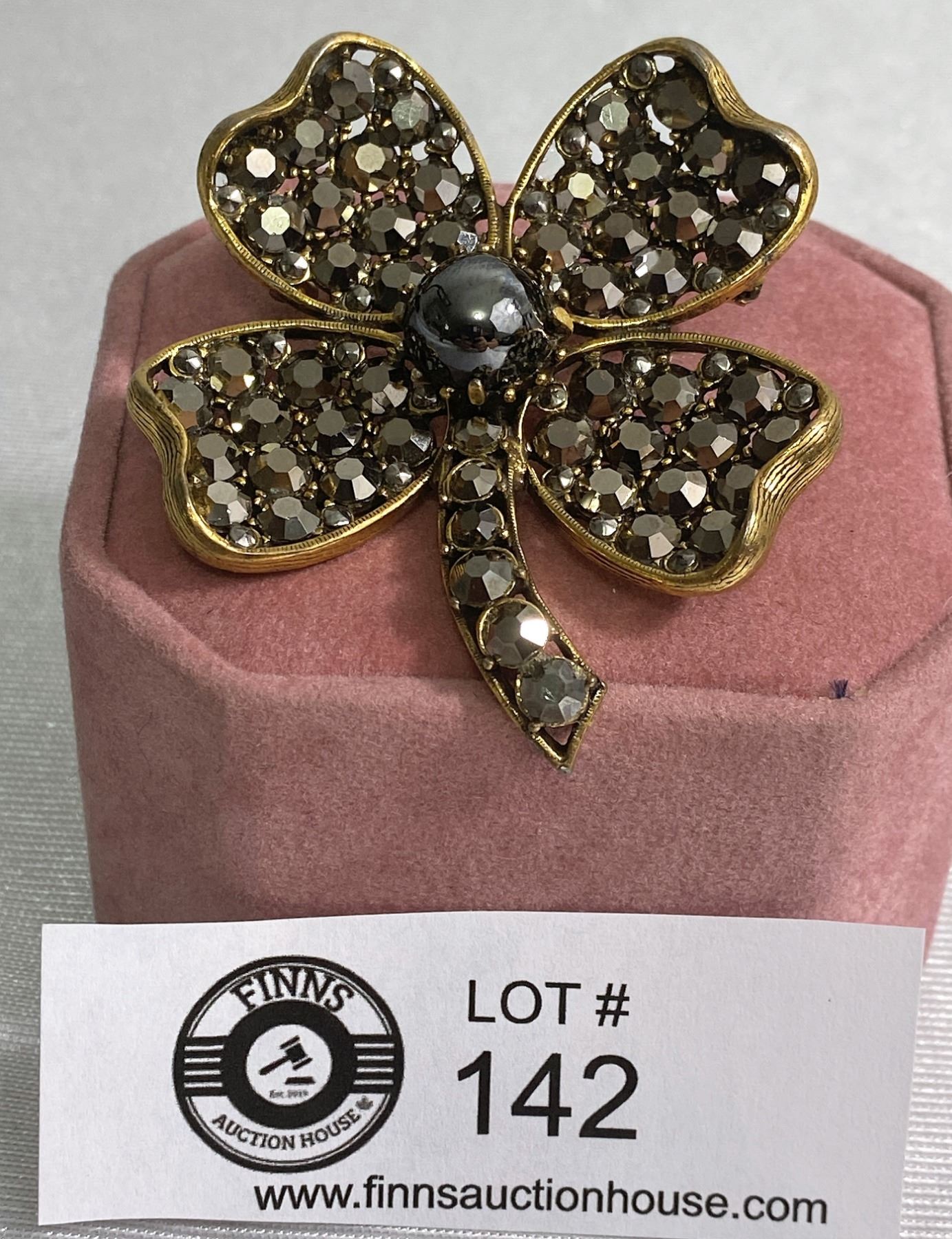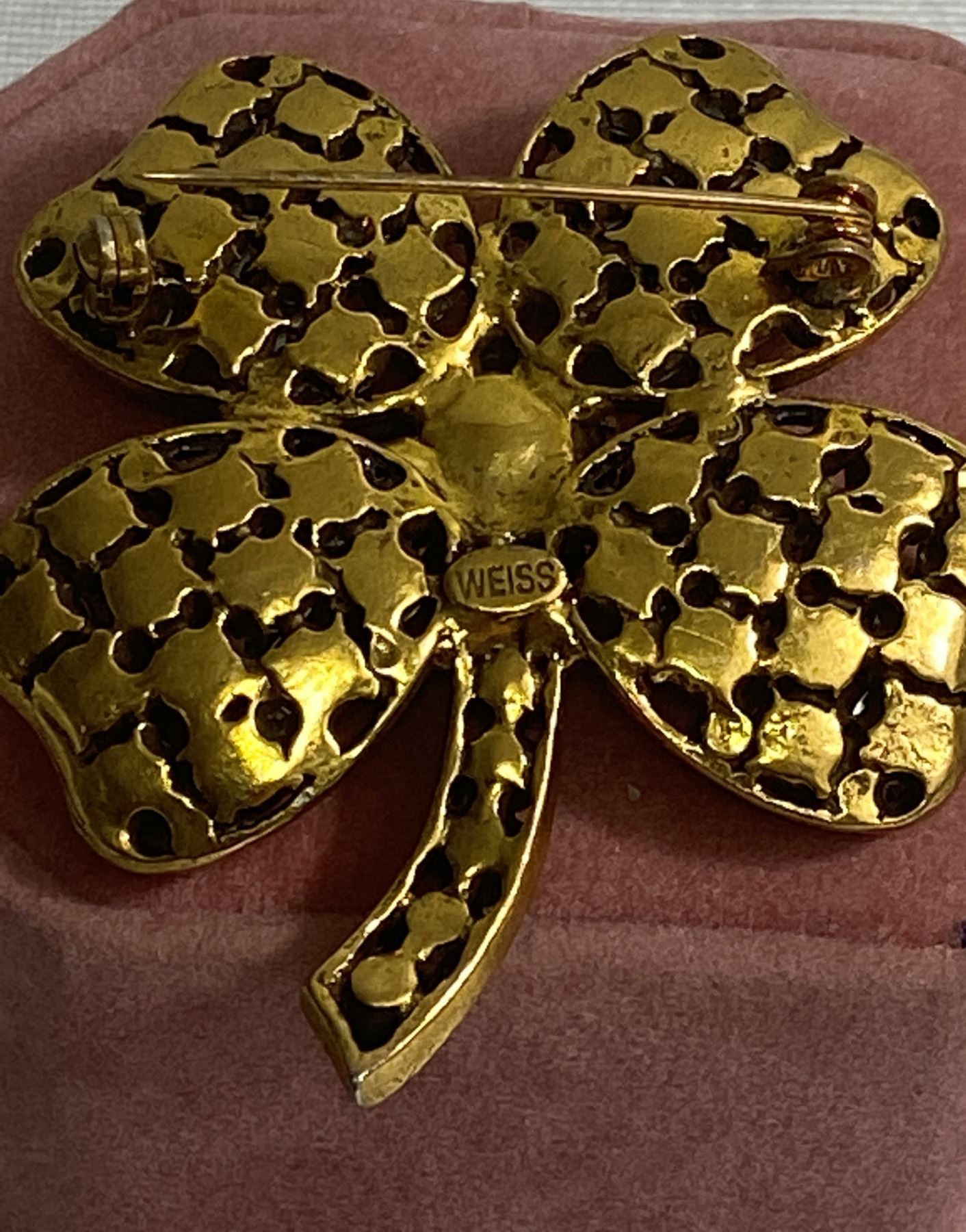 Gorgeous Weiss Signed Large Flower Brooch. Sparkly Black Stones. Length is 2.5"