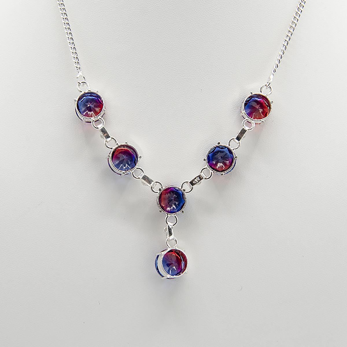 Gorgous 2 Piece 47.5 Ct Color Change Lab Alexandrite Jewelry Set.This set includes an eye clean 47.5 ct. necklace and earrings to match. Mounted in .925 sterling silver overlay. The Necklace Is 18" Long. Cttw for bith is 125.5 or 25.1 Total Gram Weight. Don't Miss This One. So Unique And Beautiful