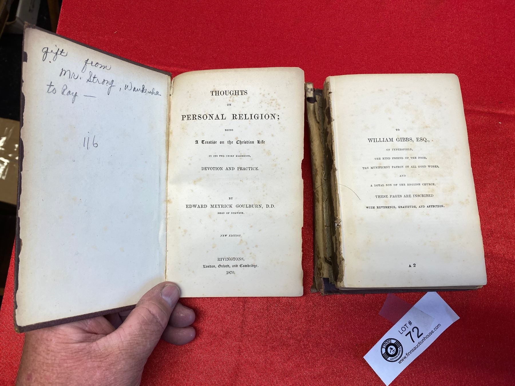 Goulburns Thoughts and Personal Religion Cover off. Late 1800's