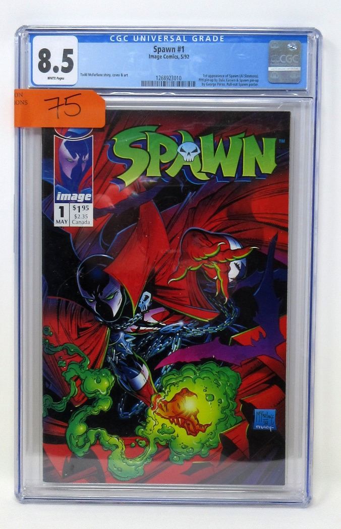CGC Grade of 8.5. Todd McFarlane story, cover & art. First appearance of Spawn (Al Simmons). Pitt pin-up by Dale Kewon & Spawn pin-up by George Perez. Pull-out Spawn poster. Sealed in acid proof hard protective