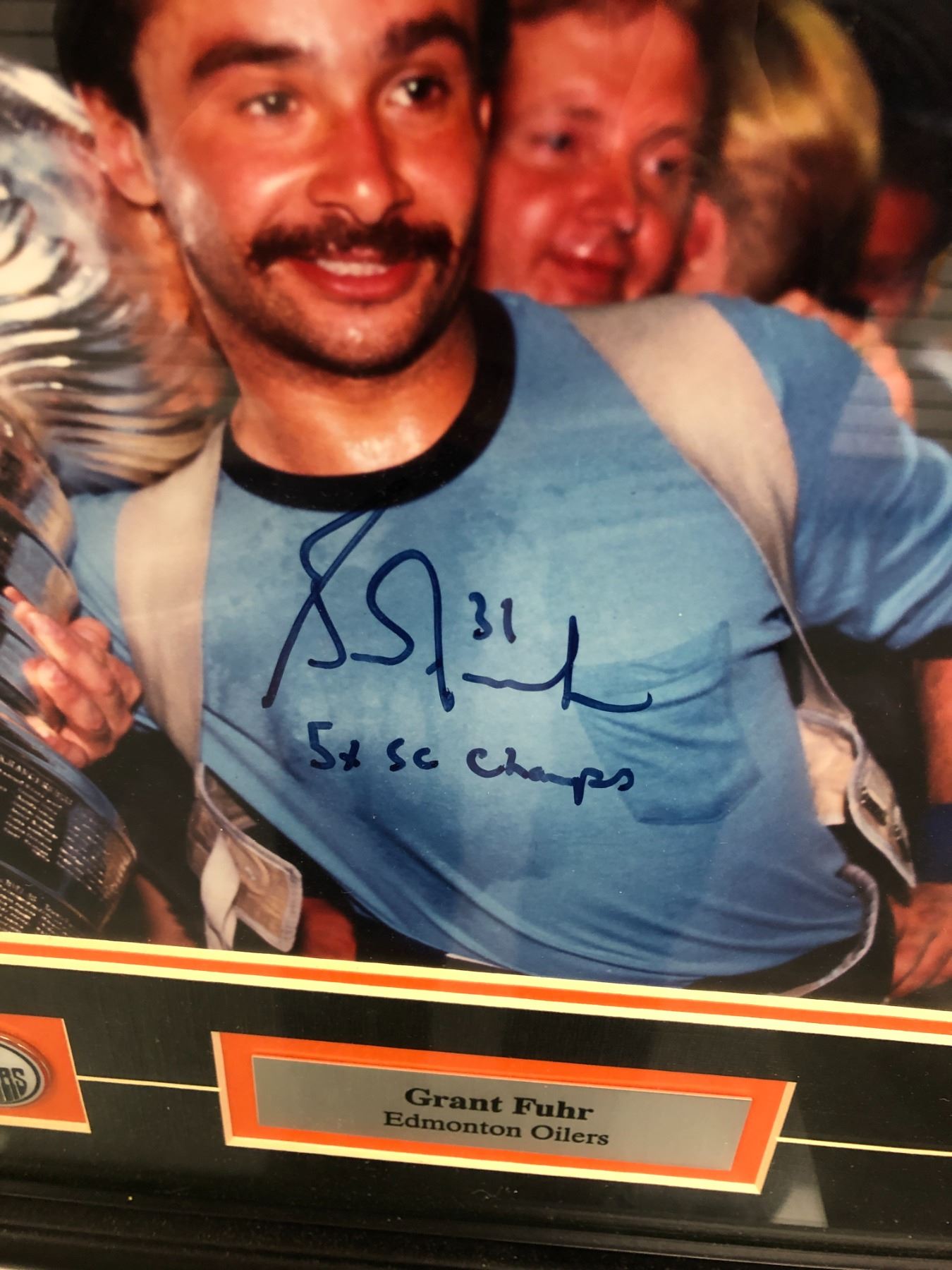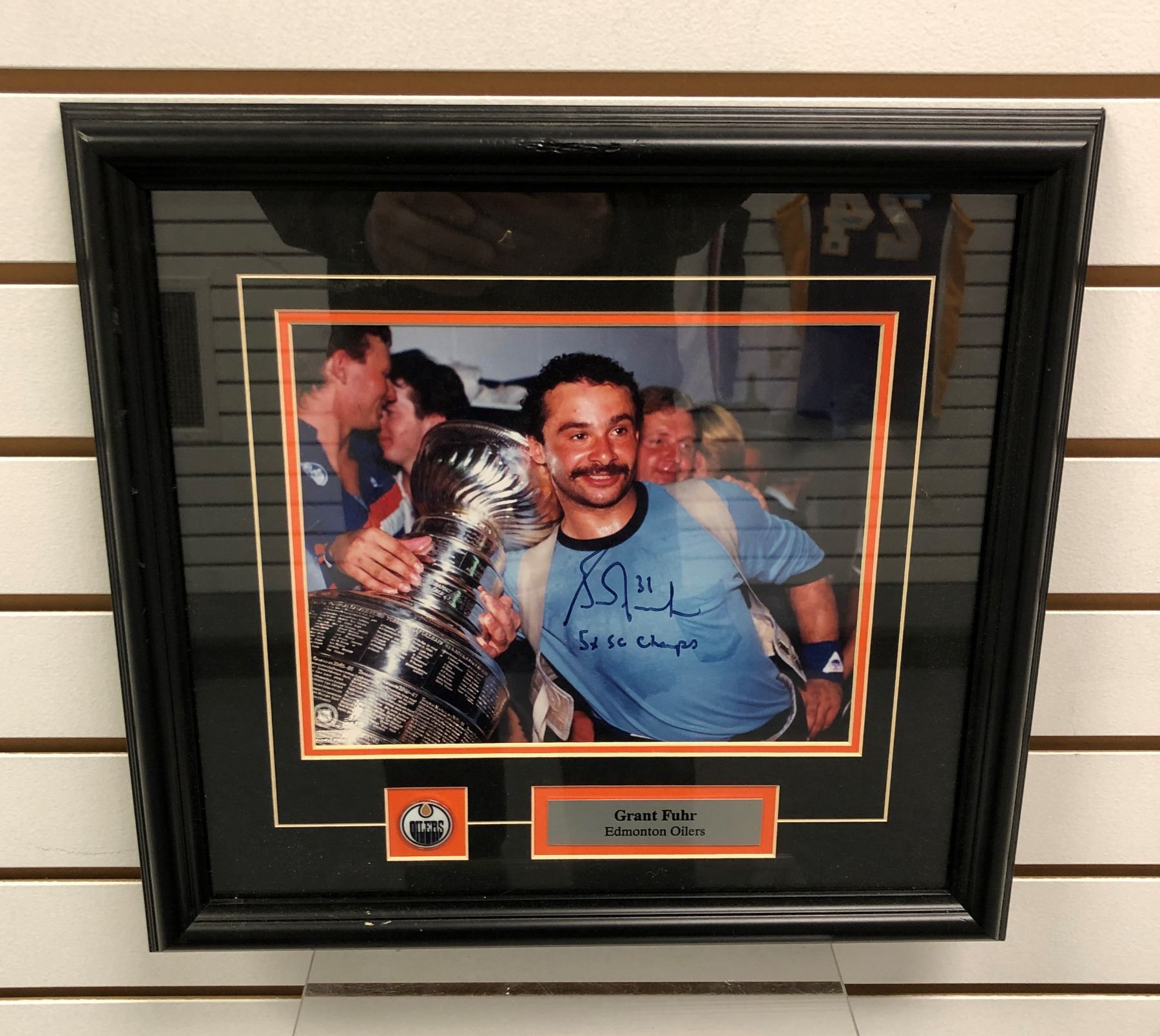 Grant Fuhr of the Edmonton Oilers - autographed framed photo - ready to be certified. 17in x 14in