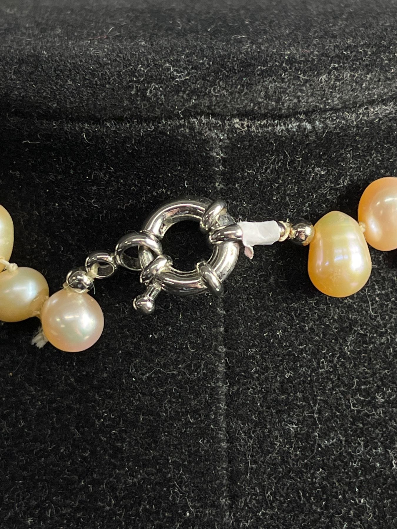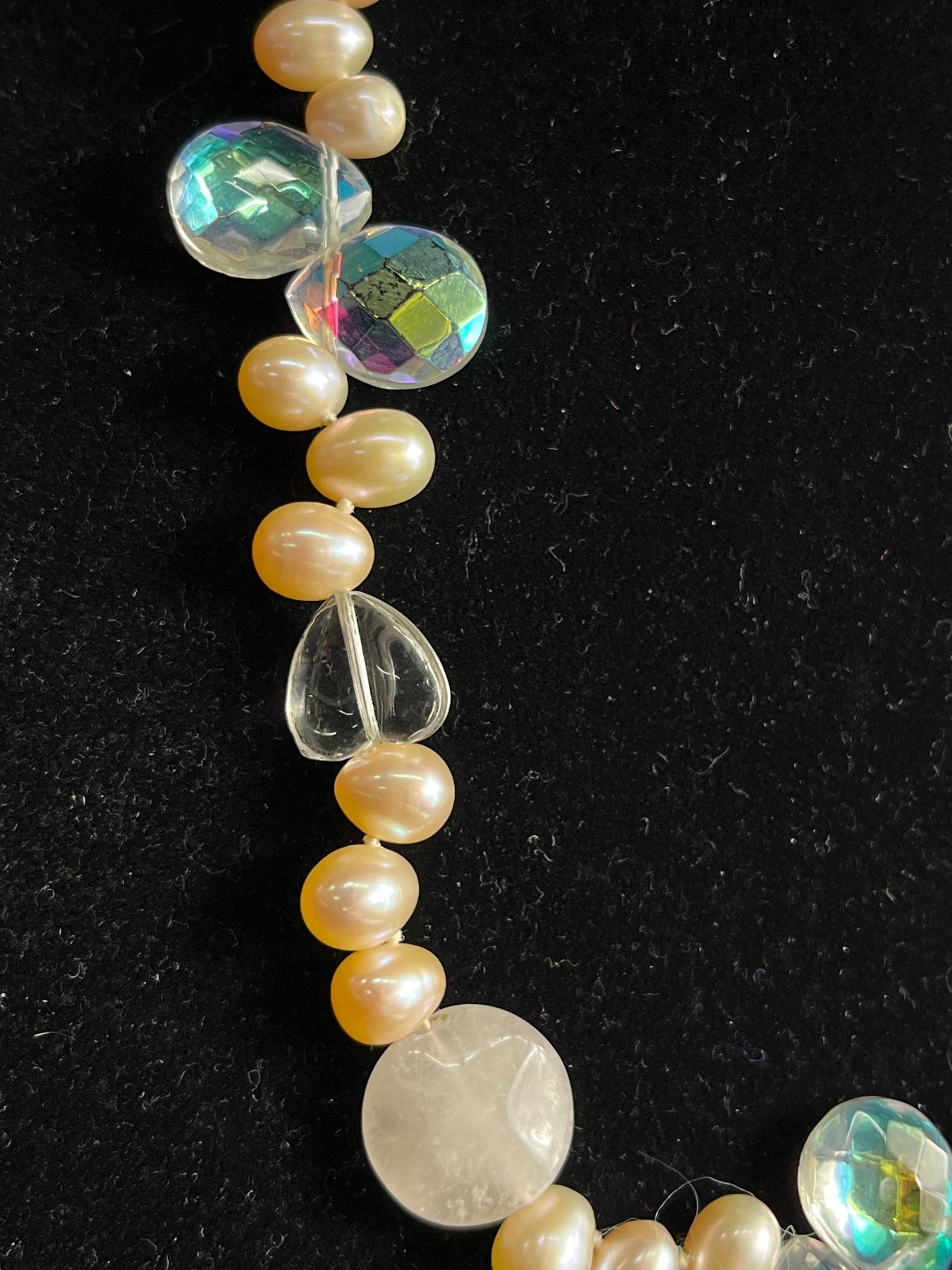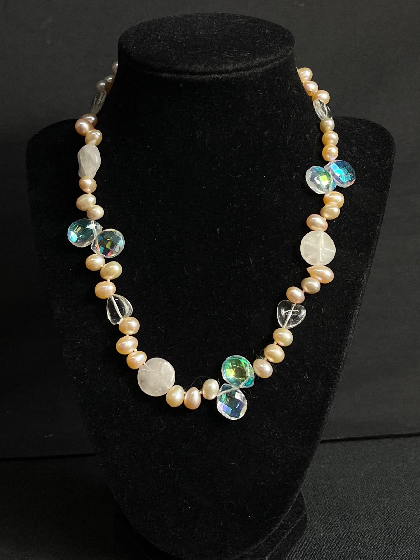 Great Combination of Genuine Pearls, Rose Quartz Stones + Borealis Beads Necklace