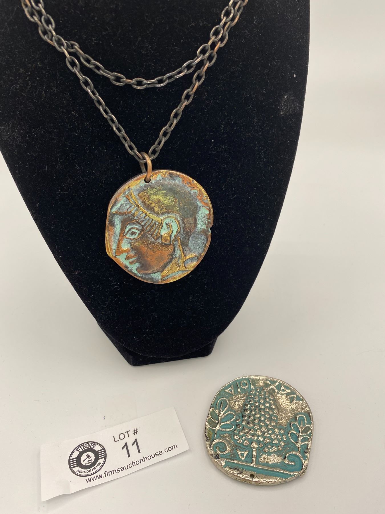 Greek Owl Double Sided Copper Necklace And Silver Tone Greek Pendant