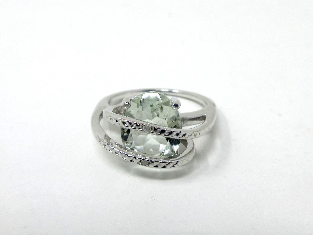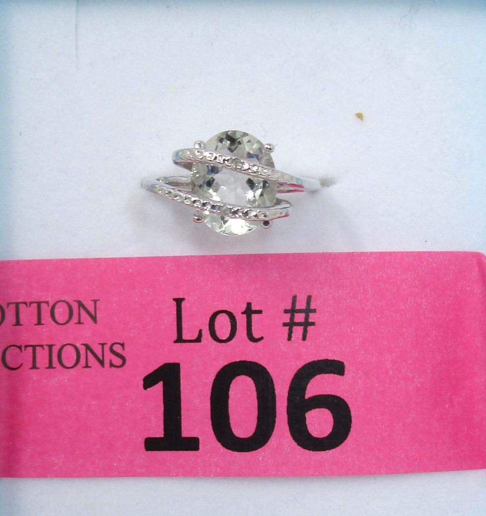 Sterling silver. 3.2 CT, Lively yellow green amethyst with 2 side diamonds. Includes $415 certificate.