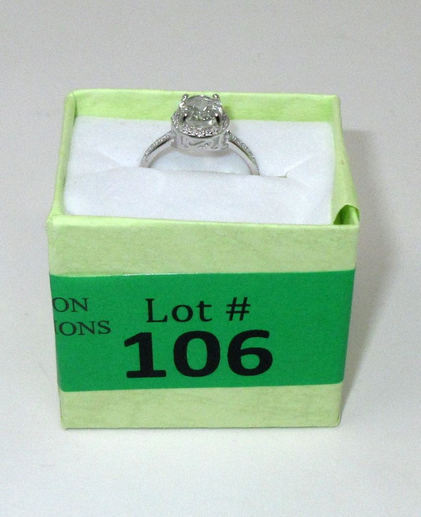 Sterling silver. 1.7 CT Oval gemstone & 2 side diamonds. Includes $375 certificate.