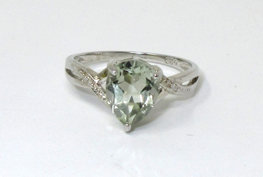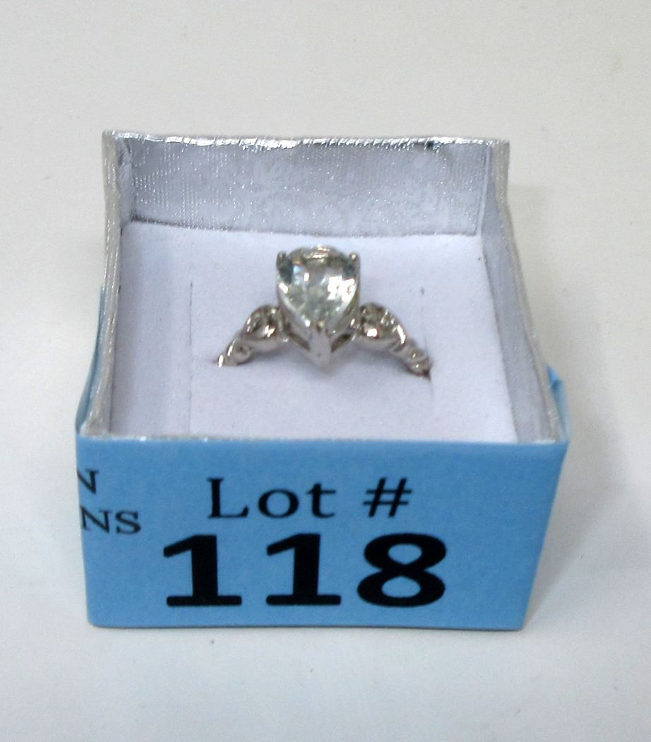 Sterling silver. Pear cut. VS Clarity gemstone with 2 side diamonds. Retail value $250.