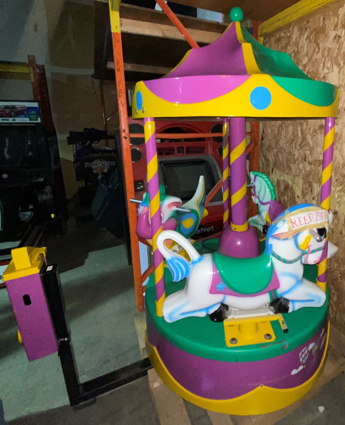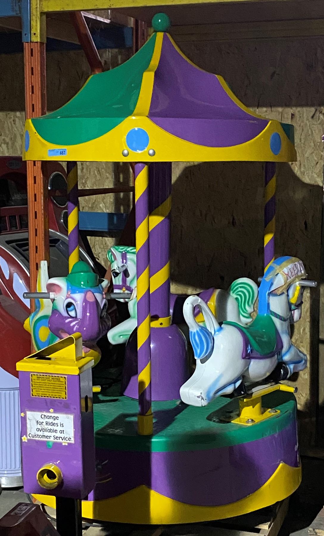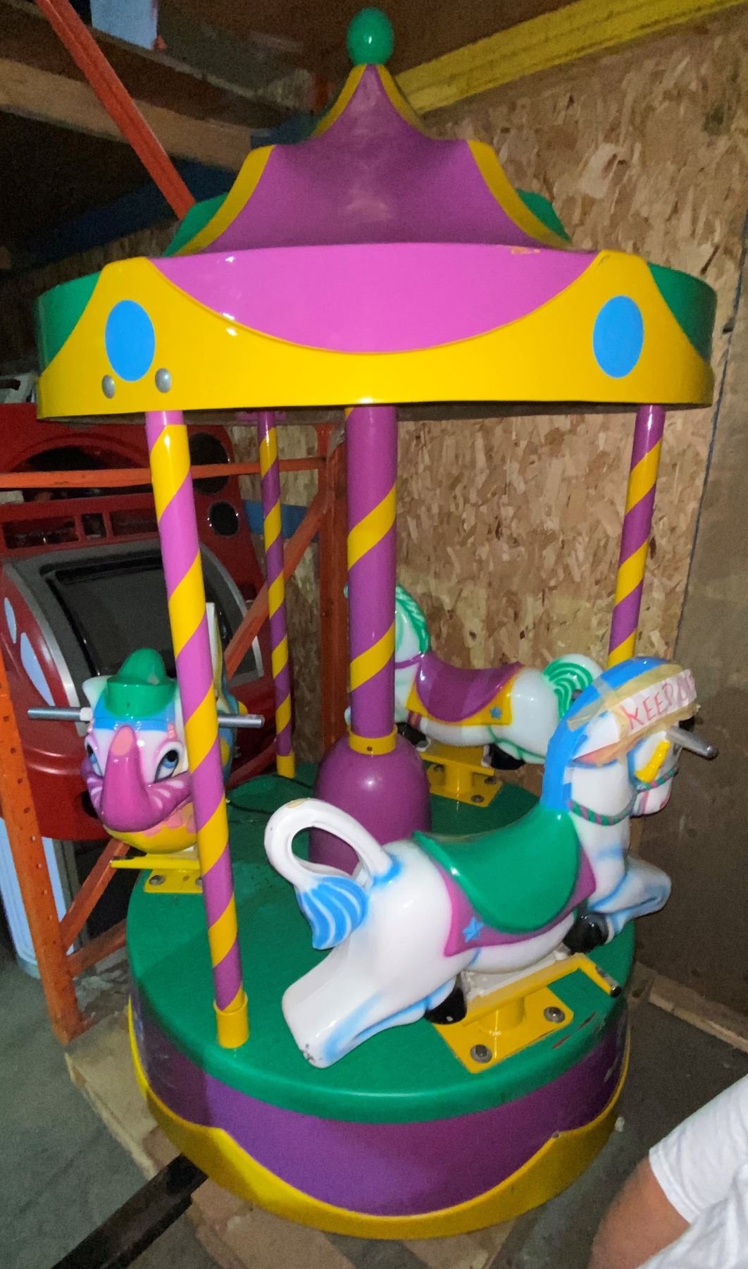 Green and Purple Elephant and Horses Carousel Kiddie Ride