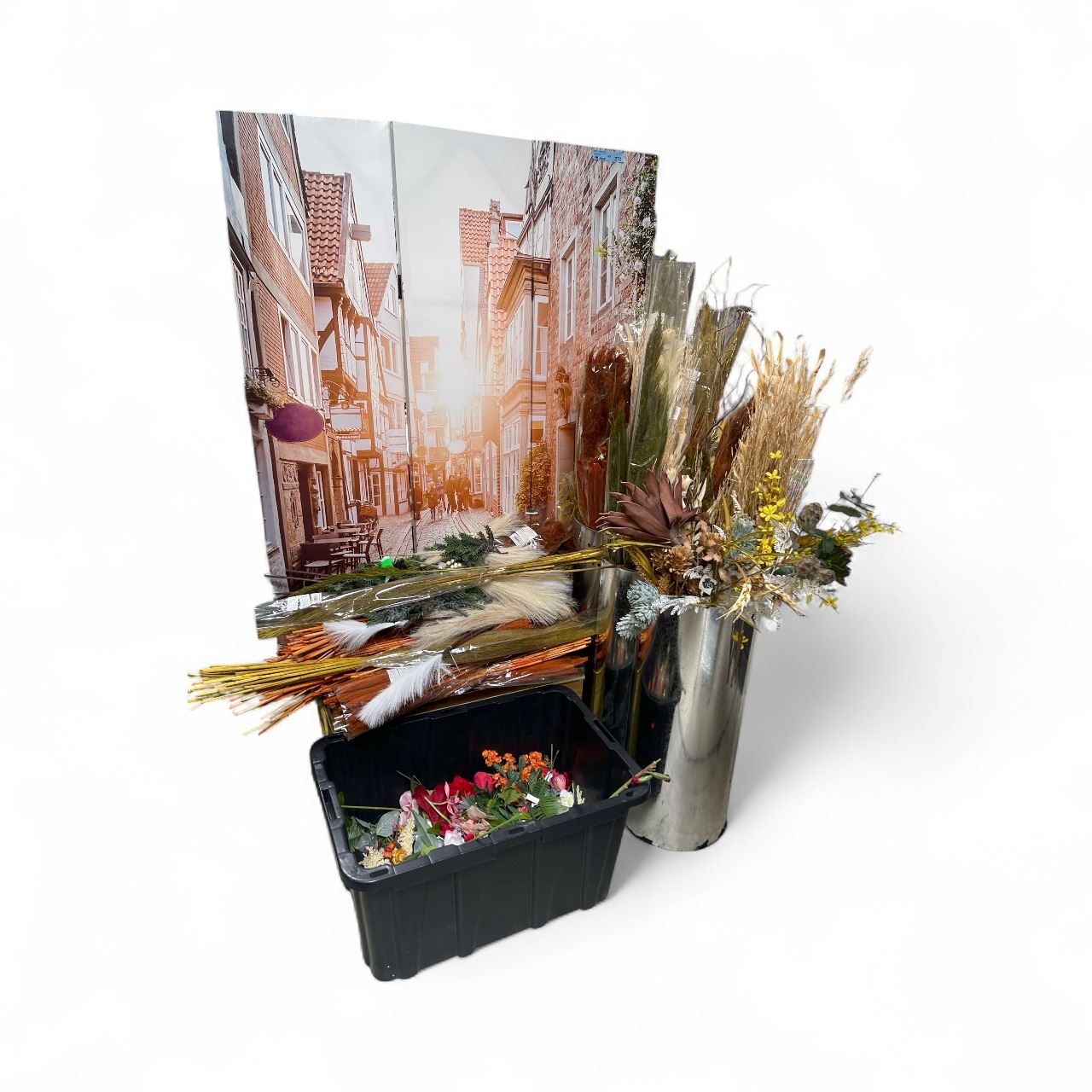 Group Decor & Faux Dried Flowers/Vegetal - includes European Scene Screen & approx. 150 pcs Misc. Decor.