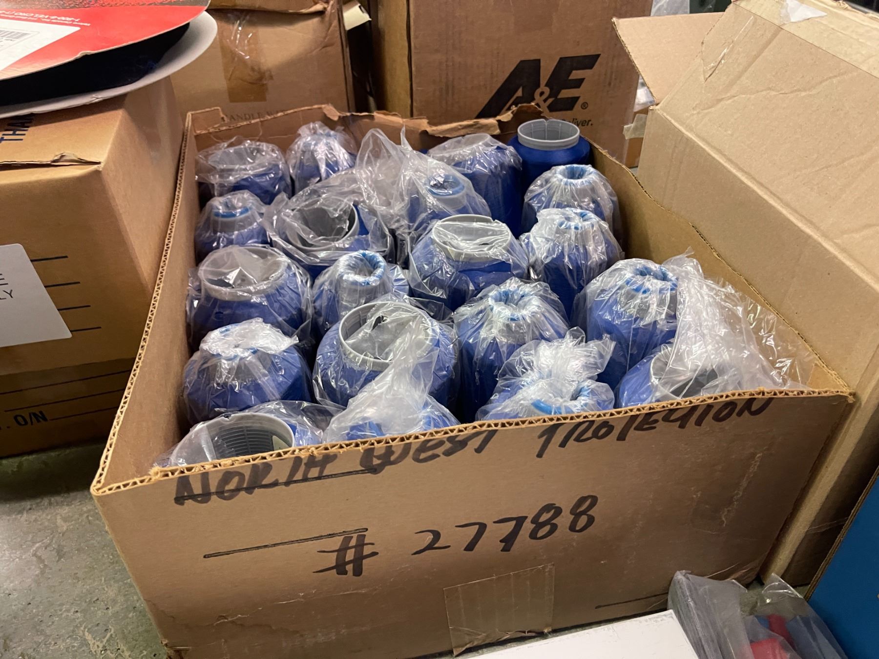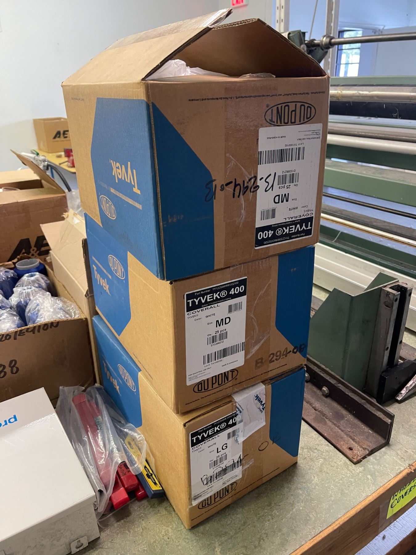 Group - First Aid Kit, Tyvek Coveralls (Approx 75), Clear Poly Bags (Approx. 4000), Blue Thread, Etc