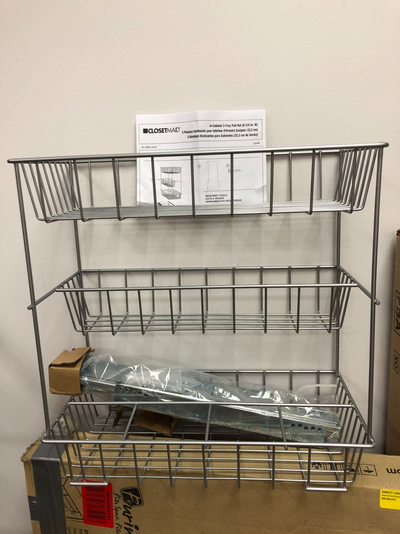 Group Lot of Home Items - Closetmaid pullout wire shelving, TV or Bedside Tray, Entertainment Centre, Shelving with wire racks and shoe rack