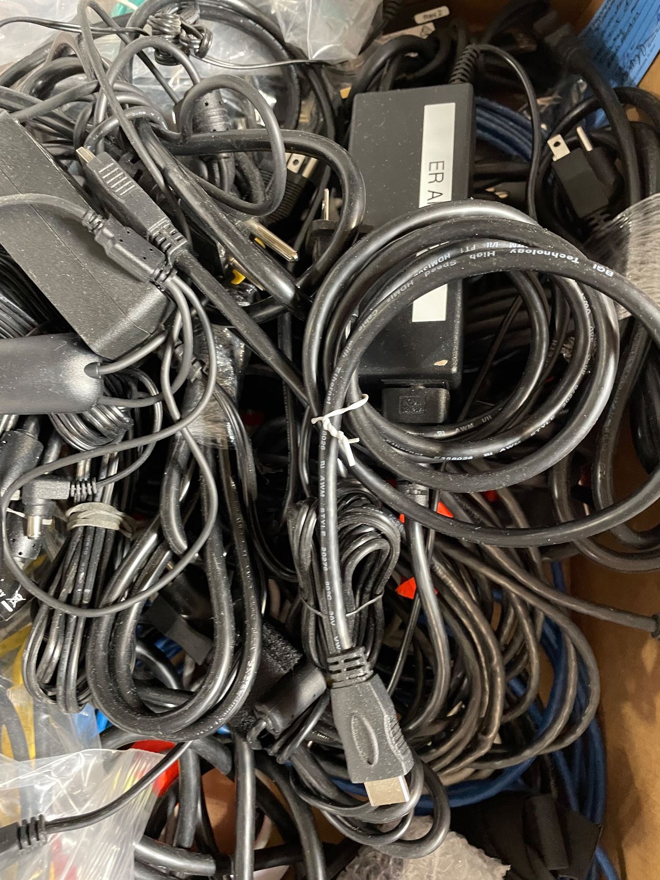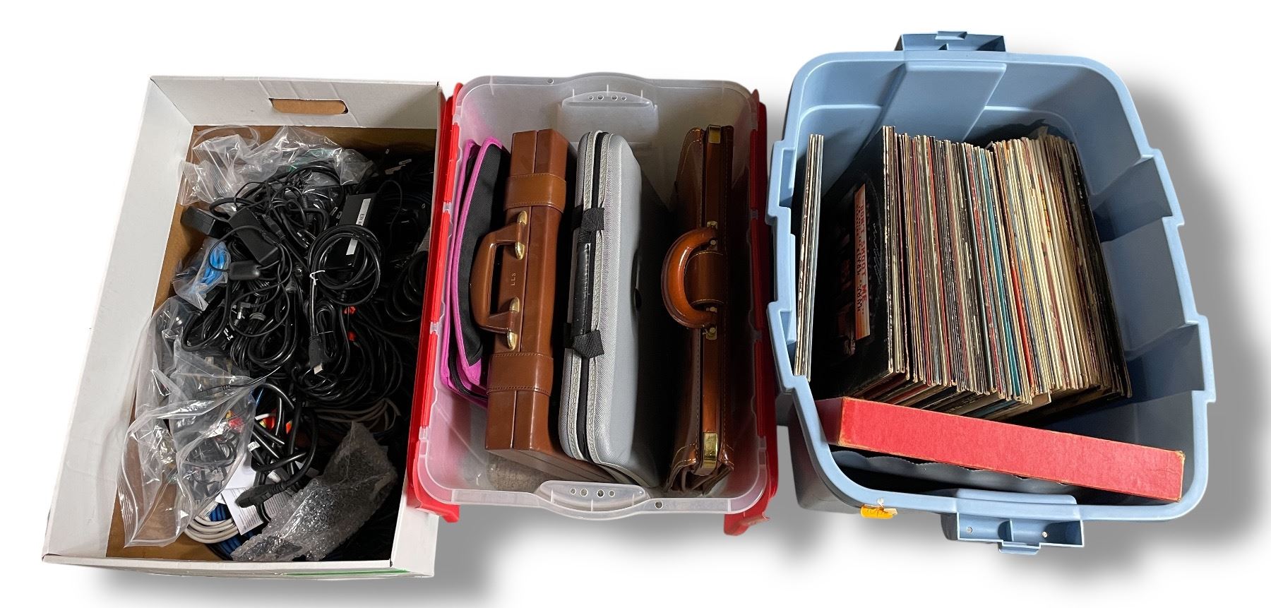 Group Lot of Misc. Vintage Vinyls, Leather Cases & Misc. Cables